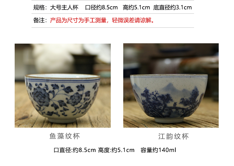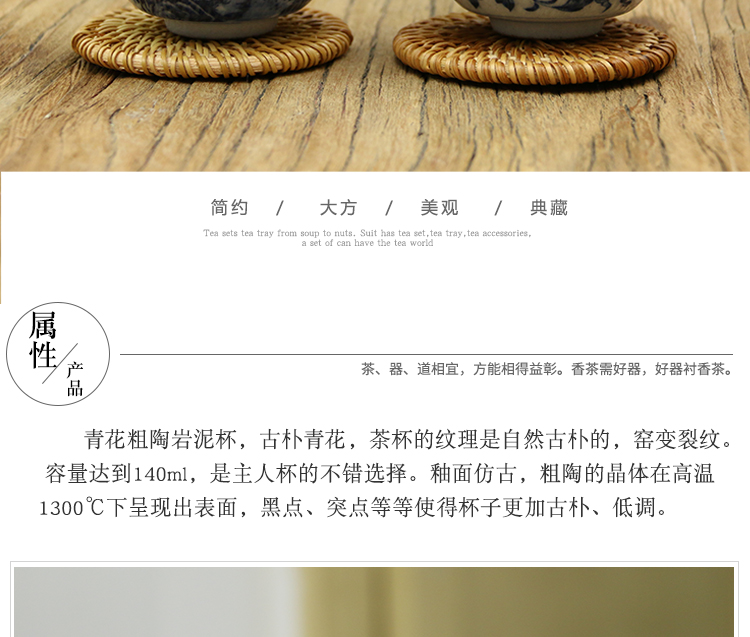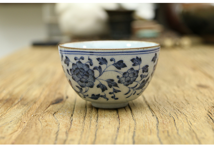 [2]白蠻 粗陶巖泥青花杯140ml大號主人杯開片品茗杯茶盞茶碗功夫茶具1入
