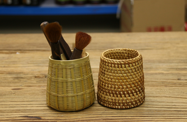 [2]茶道筒筆筒收納筒手工竹編藤編茶道零配擇藤茶具功夫茶具茶臺配件1入