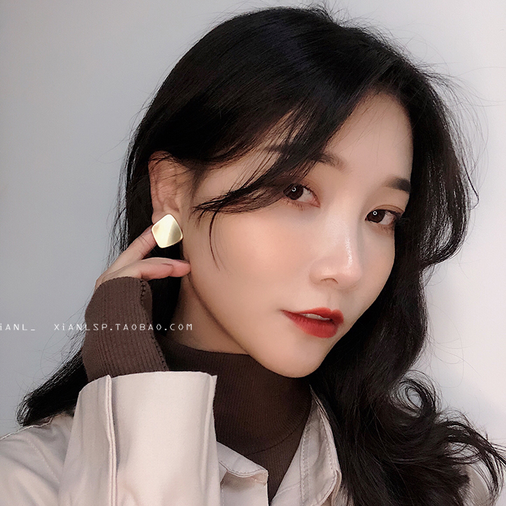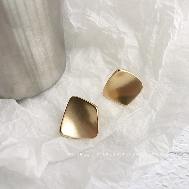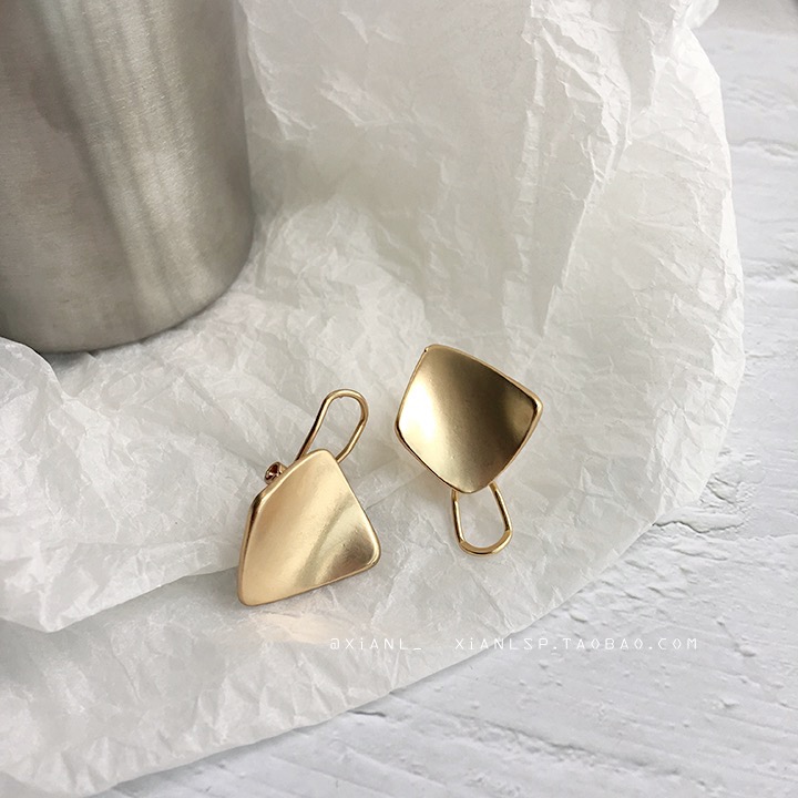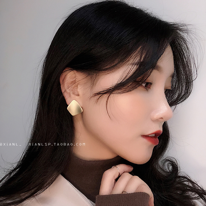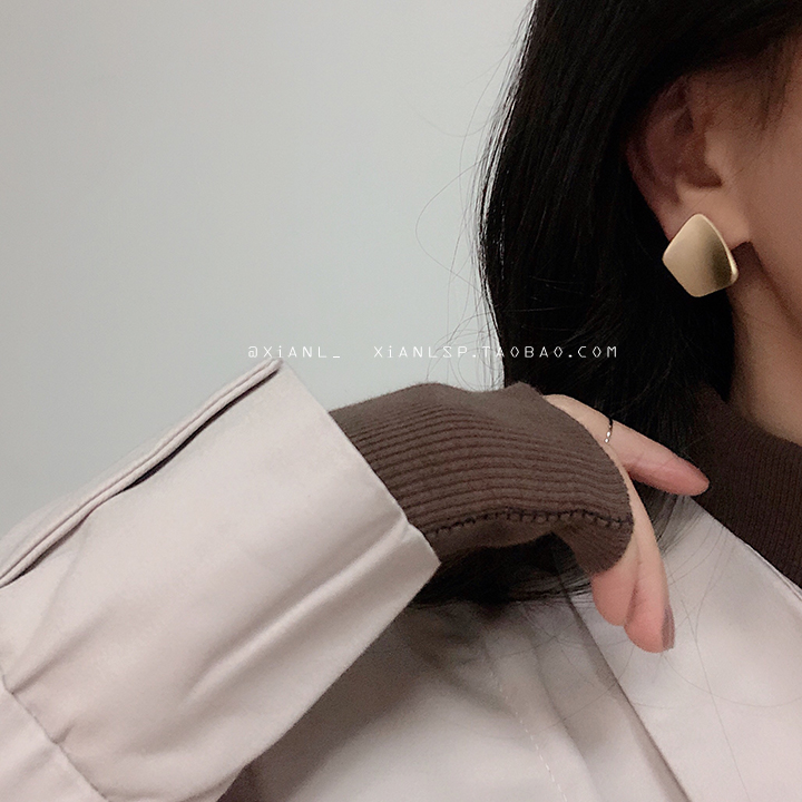 適合圓臉的耳墜顯瘦啞光金屬氣質耳環冷淡風幾何不規則短款耳釘女1入