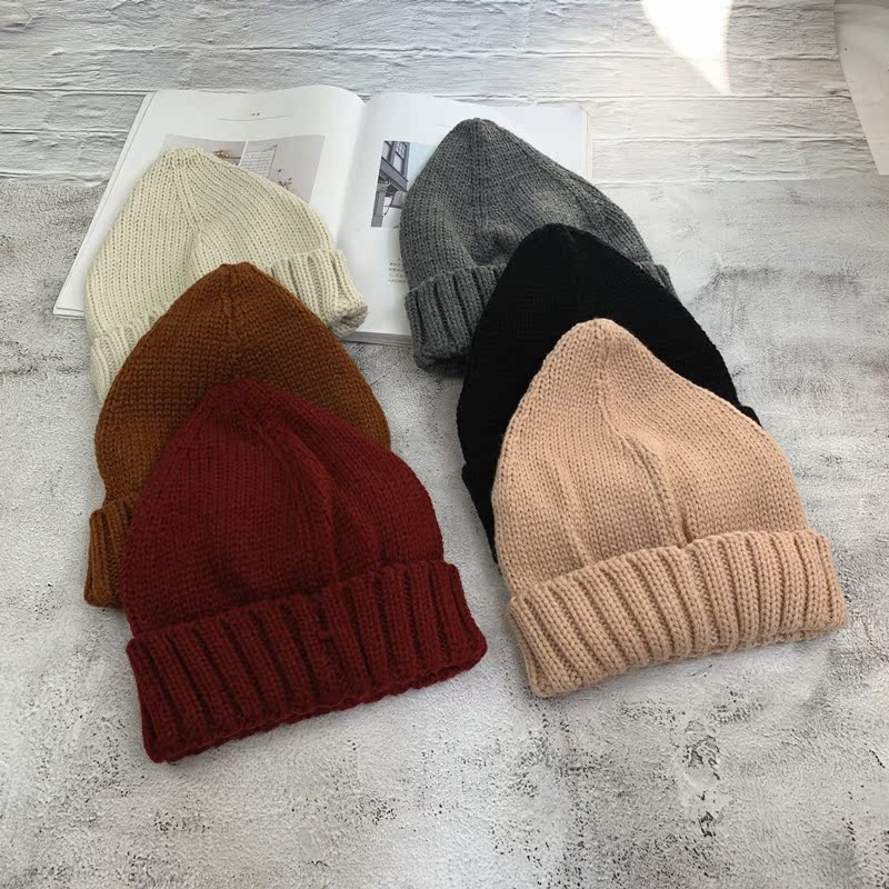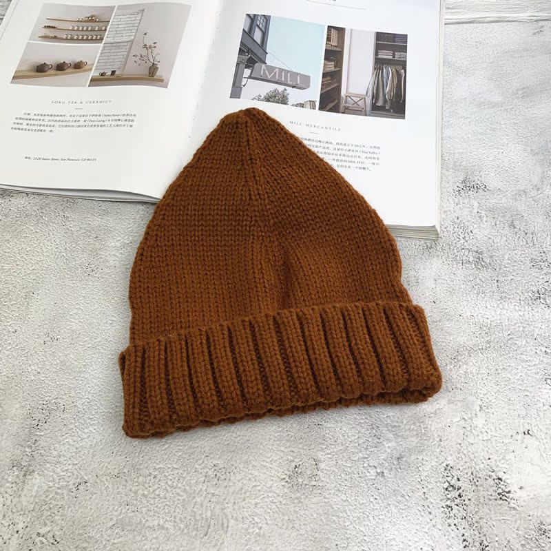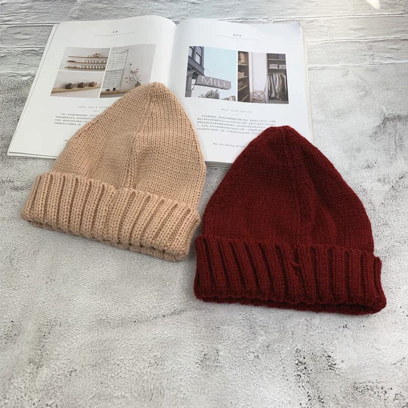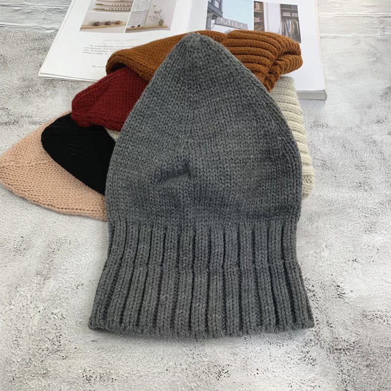 針織帽女秋冬韓版純色簡約可愛百搭尖尖帽日系保暖學生文藝毛線帽1入