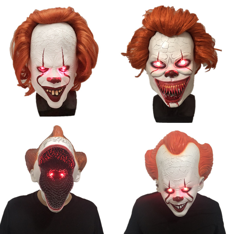 2019新款小丑回魂面具發光回魂小丑頭套周邊萬圣節恐怖發光面具1入
