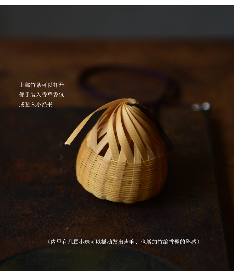 金竹精編香囊掛飾 竹編香囊 茶器香道掛飾竹編文玩竹編茶道零配件1入