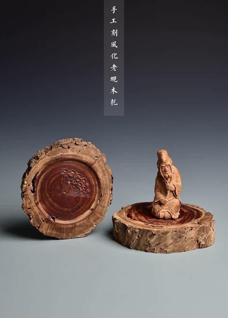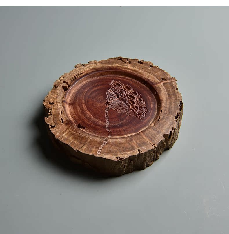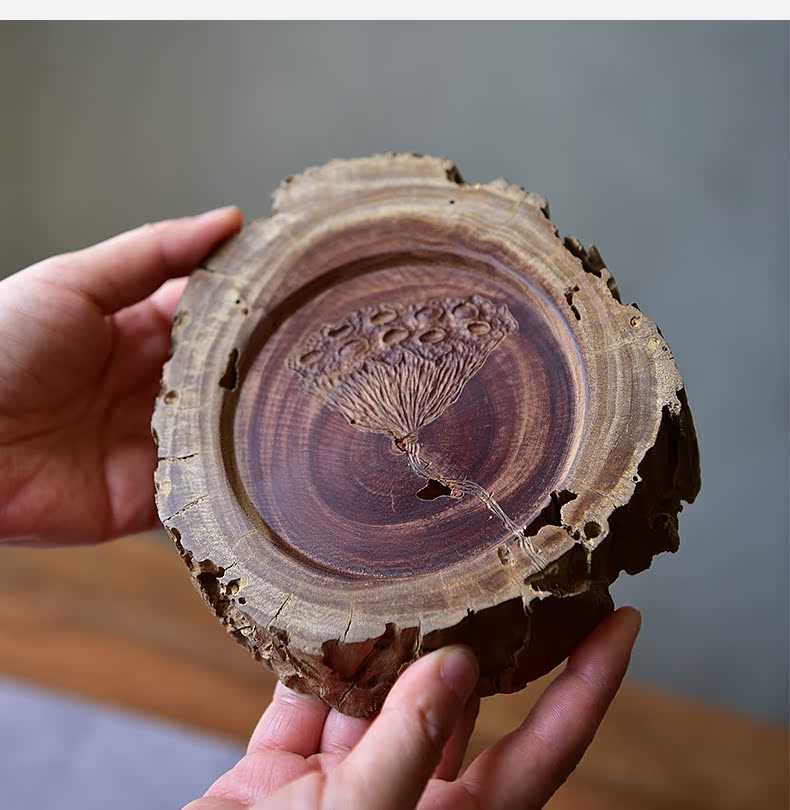 風化老蜆木托座 手工雕刻蓮蓬 天然實木壺托杯墊杯托養壺托木底座1入