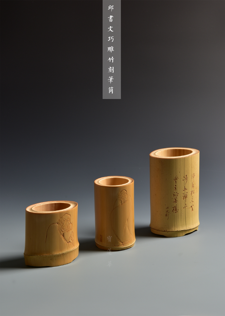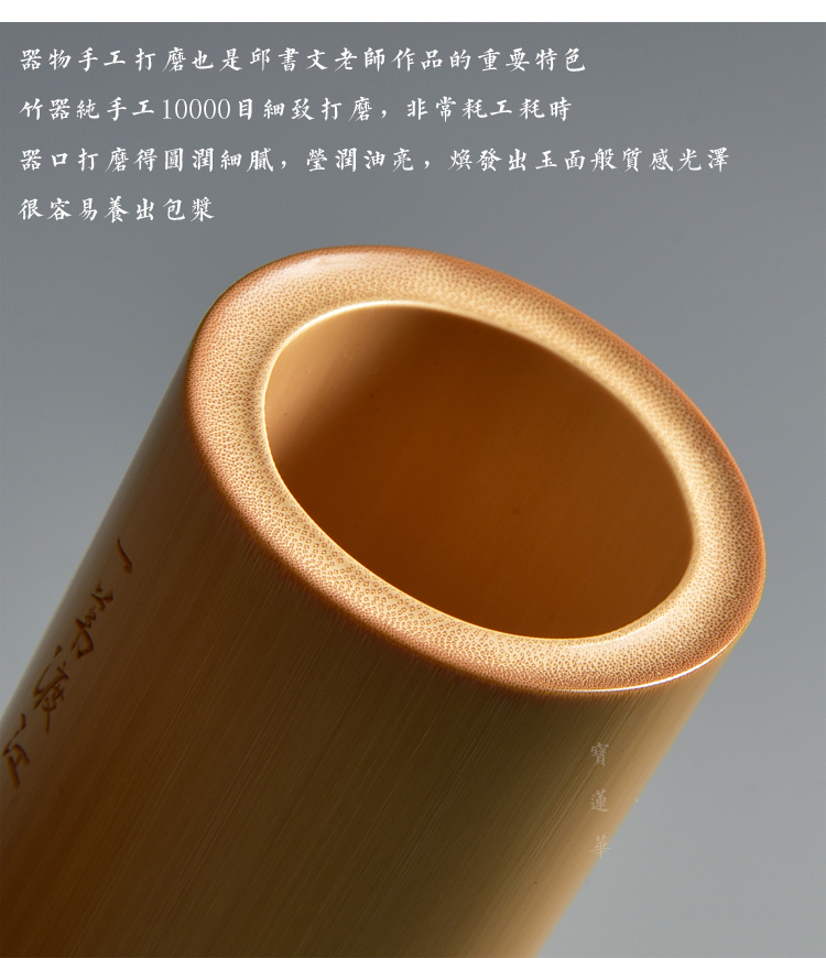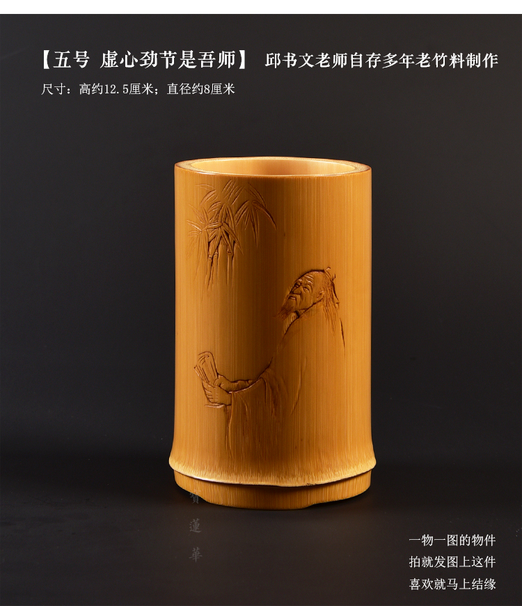 邱書文純手工巧雕竹筆筒 茶具筒 蟲噬竹雕 茶玩擺件留青竹雕刻1入