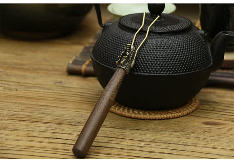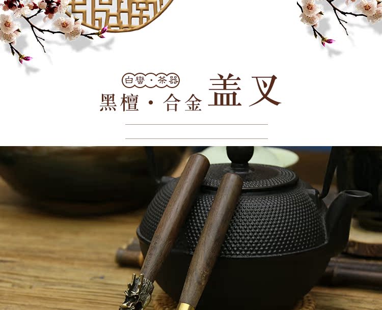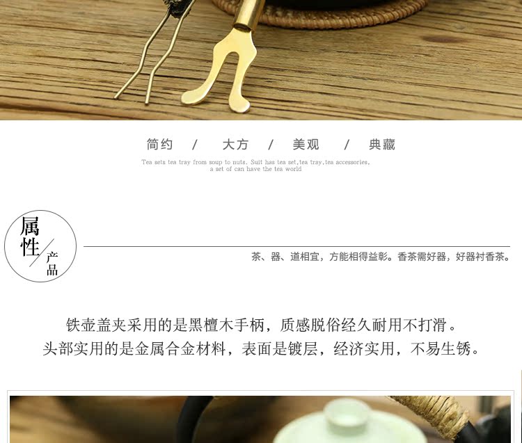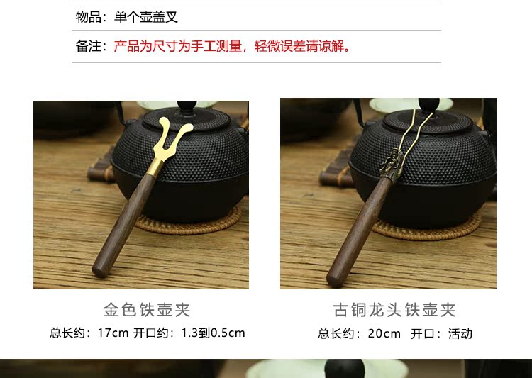 白蠻 鐵壺蓋夾壺叉鐵壺銅壺壺夾鐵壺伴侶鐵壺配件黑檀鑄鐵壺茶夾1入