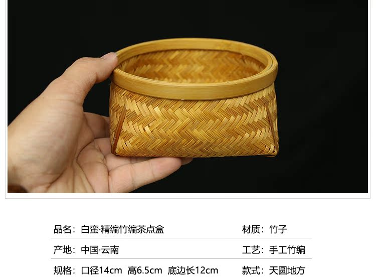 茶點盒竹編手工茶點盒收納包裝零食盒茶道配件堅果盒茶臺收納果盤1入