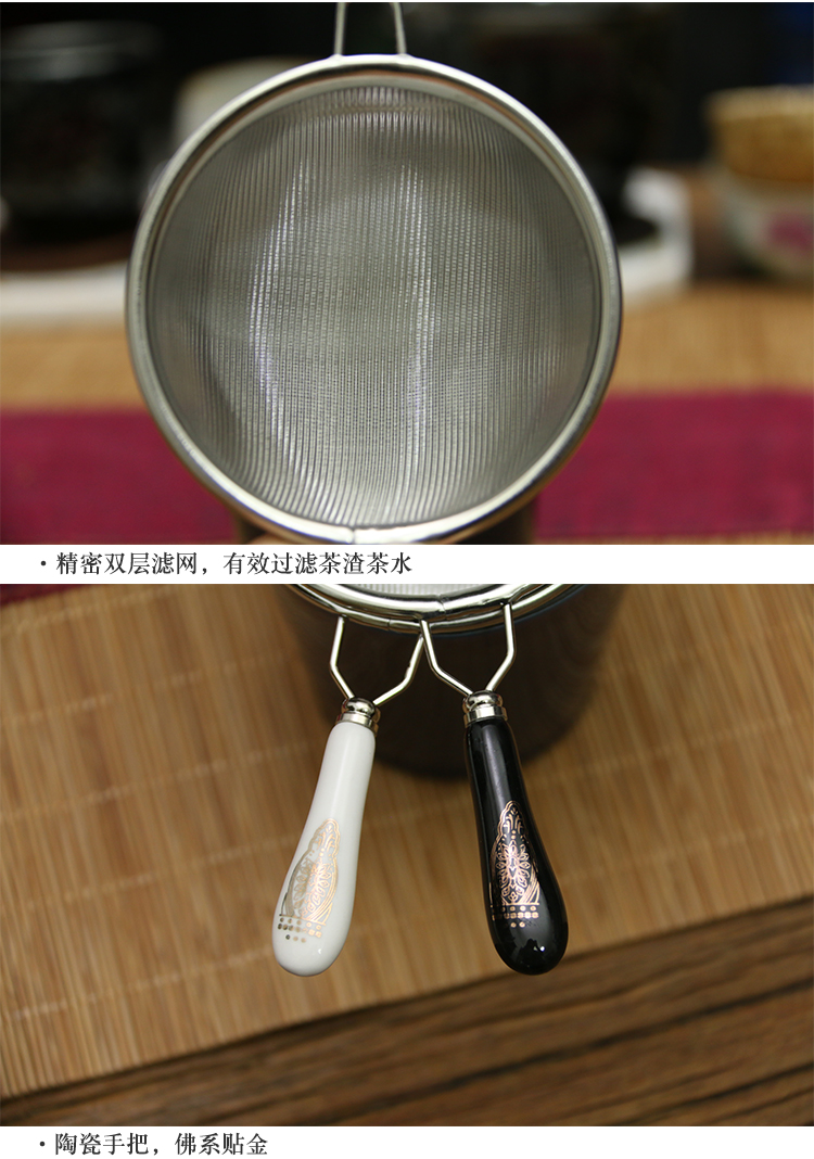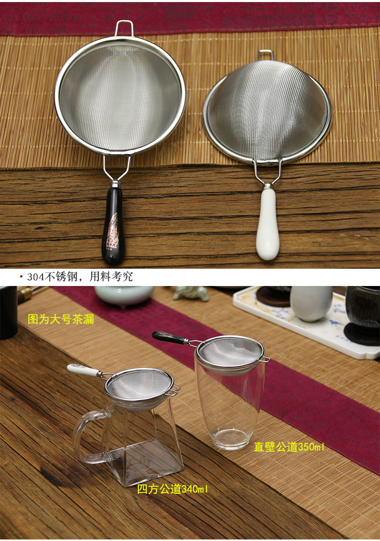 [2]日式304不銹鋼茶漏茶濾茶葉茶渣過濾網功夫茶具配件創意陶瓷柄細1入