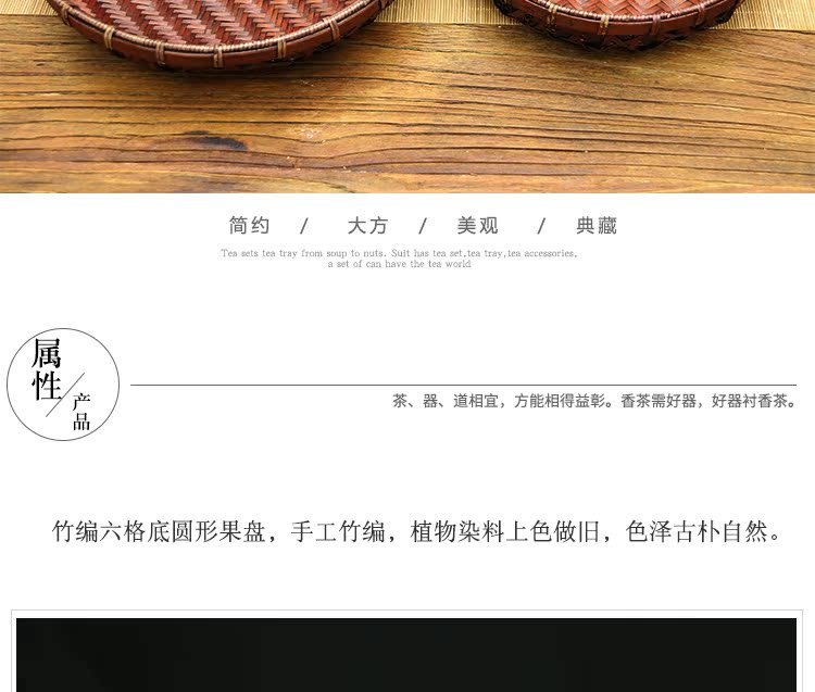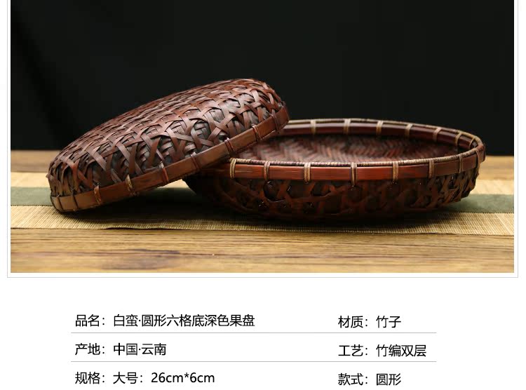 [2]竹編仿古做舊果盤圓形果盤收納盒擇藤茶具茶具收納水果盤堅果盤1入
