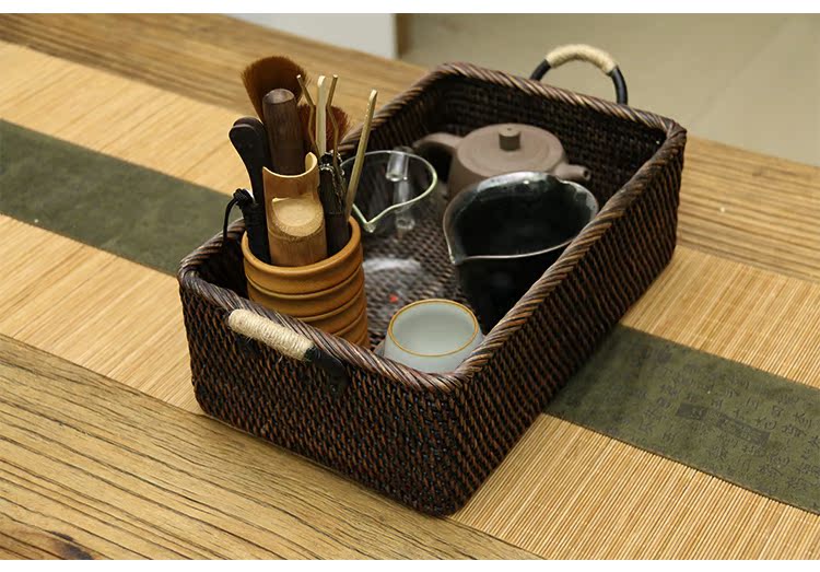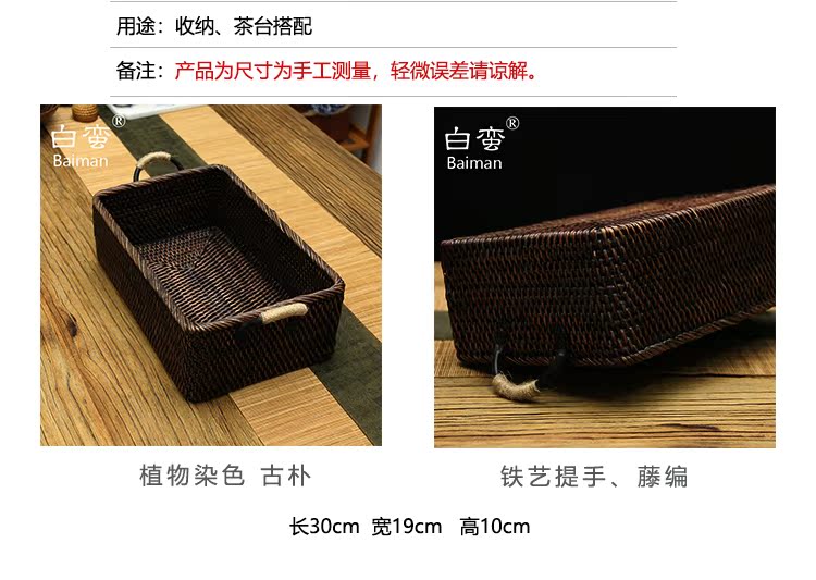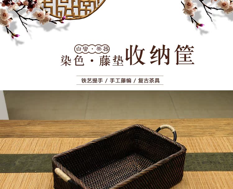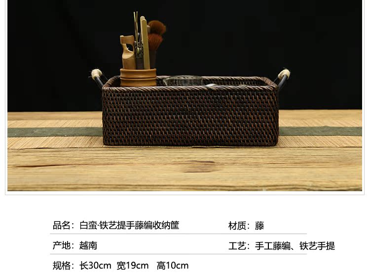 白蠻 藤編收納筐包裝鐵藝提手植物染色越南藤編收納盒茶臺收納筐1入