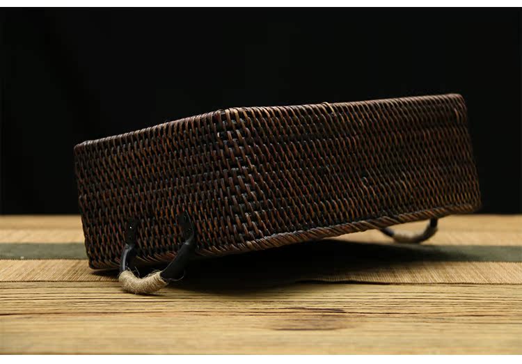[2]白蠻 藤編收納筐包裝鐵藝提手植物染色越南藤編收納盒茶臺收納筐1入