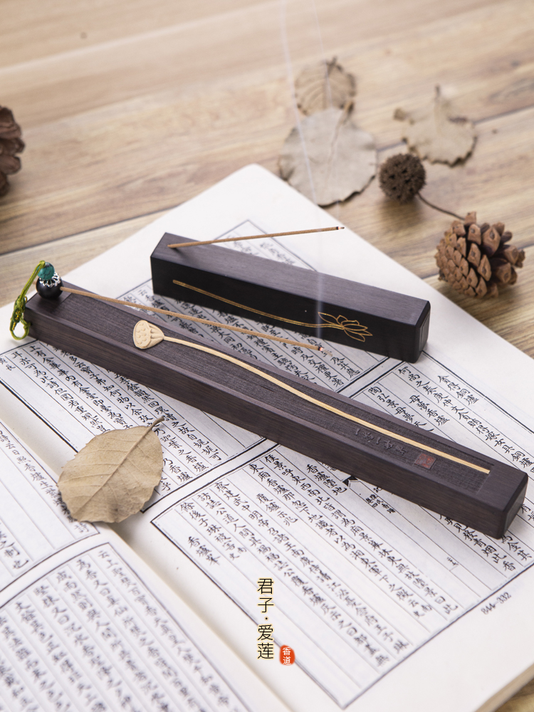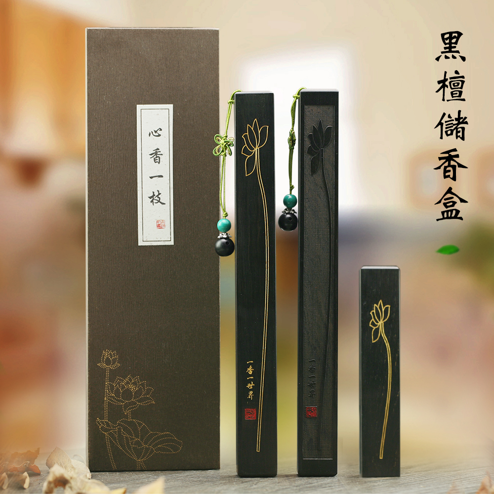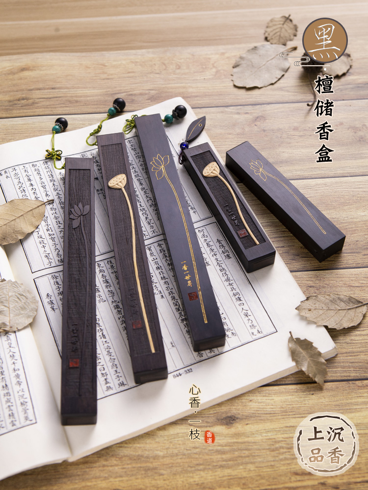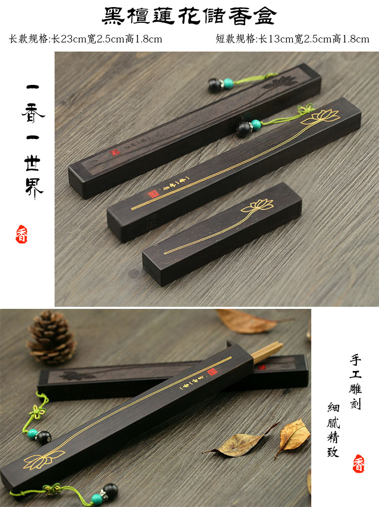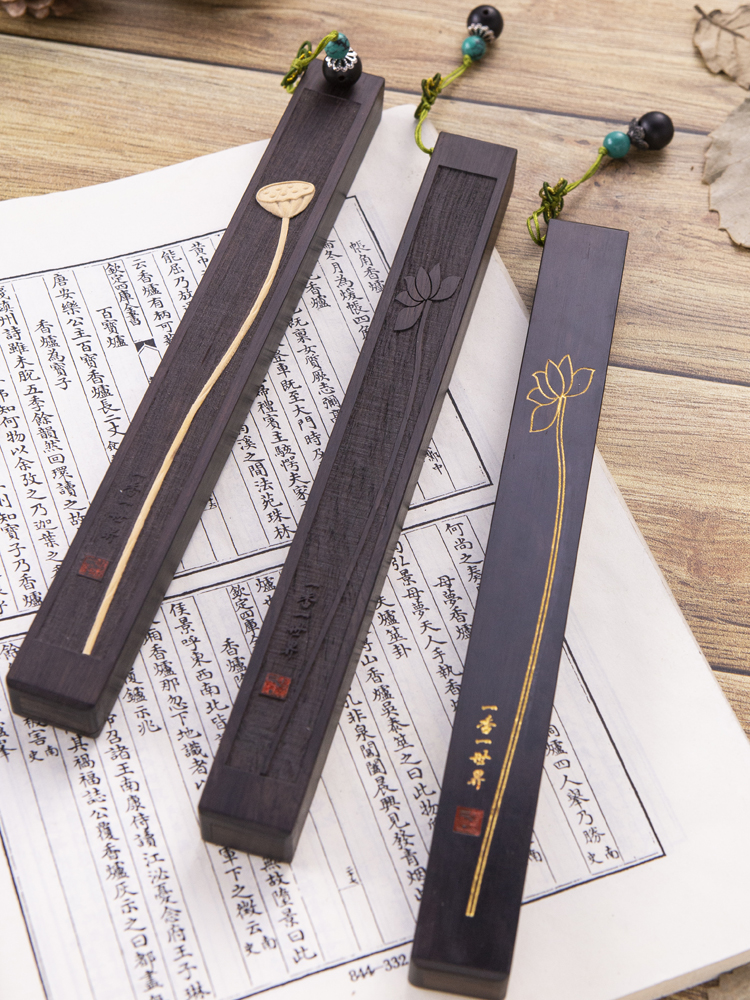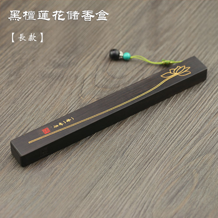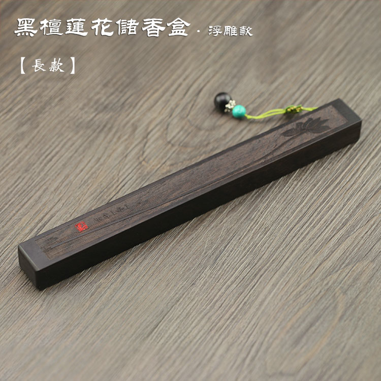 黑檀儲香盒香筒臥香爐線香香插浮雕蓮花儲香盒香道用具儲存線香爐1入