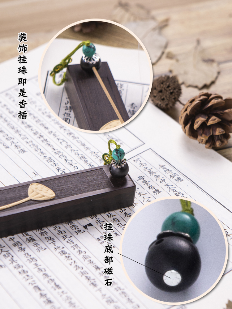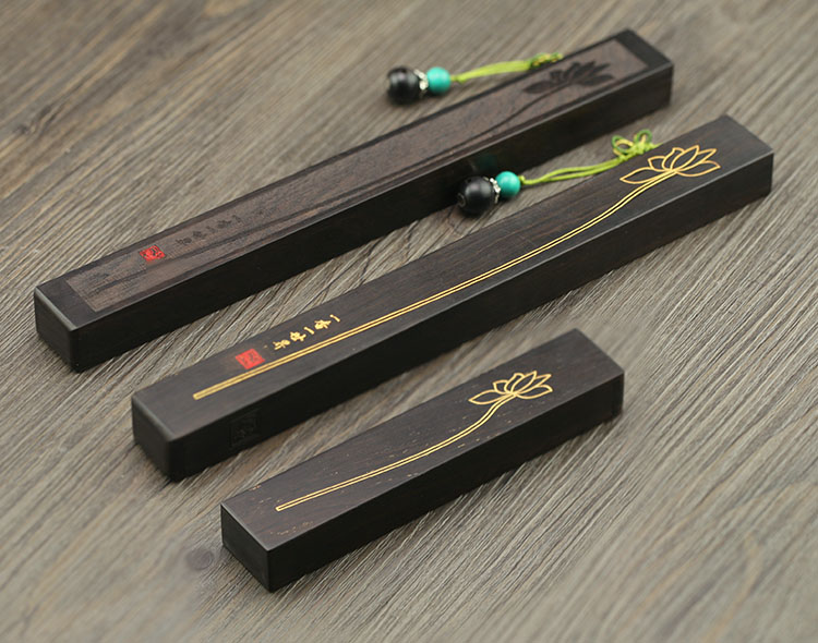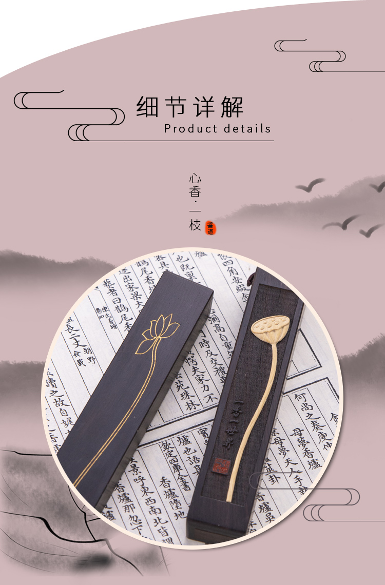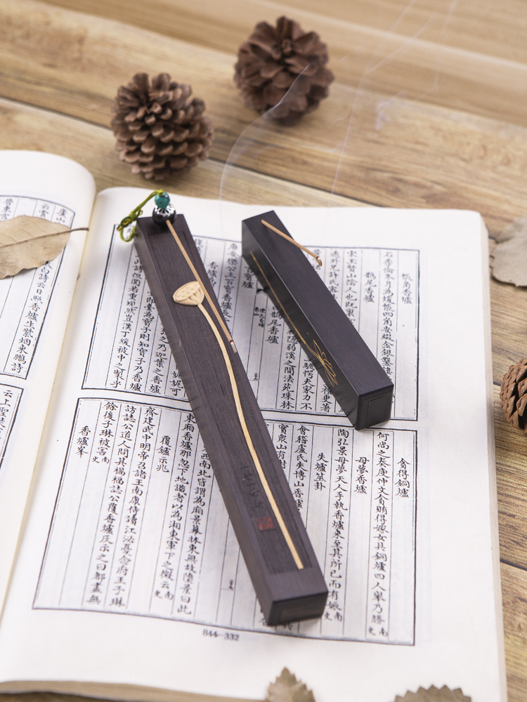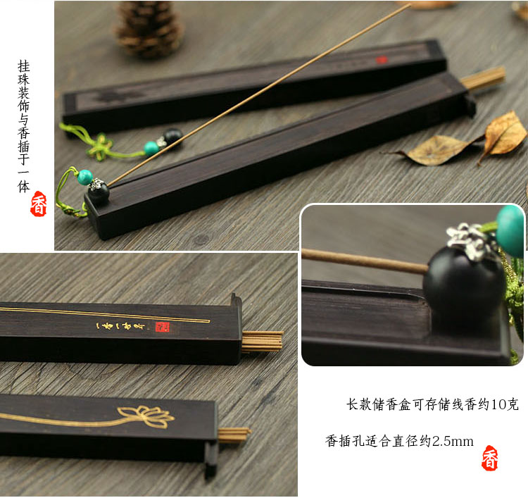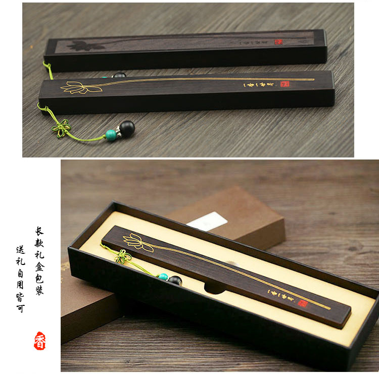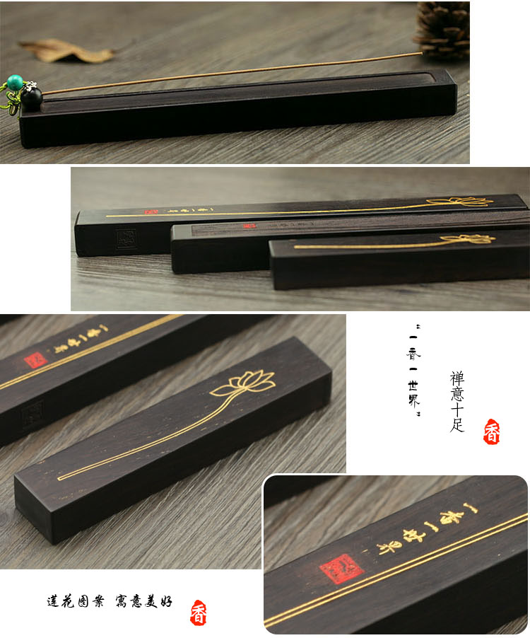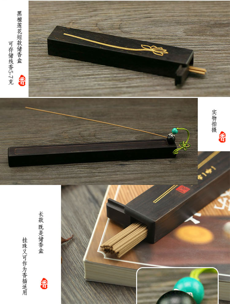 黑檀儲香盒香筒臥香爐線香香插浮雕蓮花儲香盒香道用具儲存線香爐1入