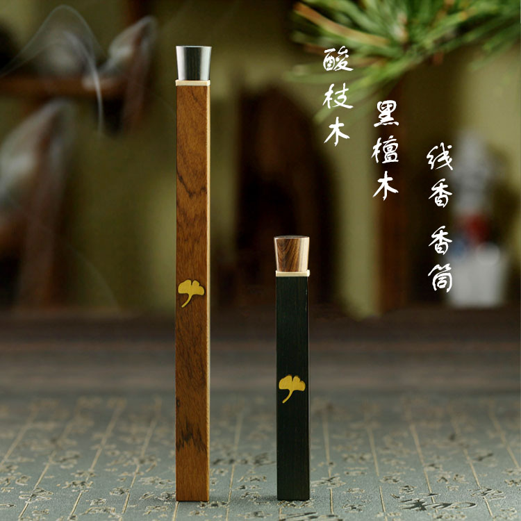 黑檀木酸枝木香管香筒線香沉香檀香長款短款線紅木香管熏香盒香桶1入