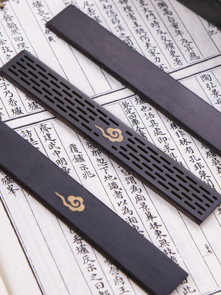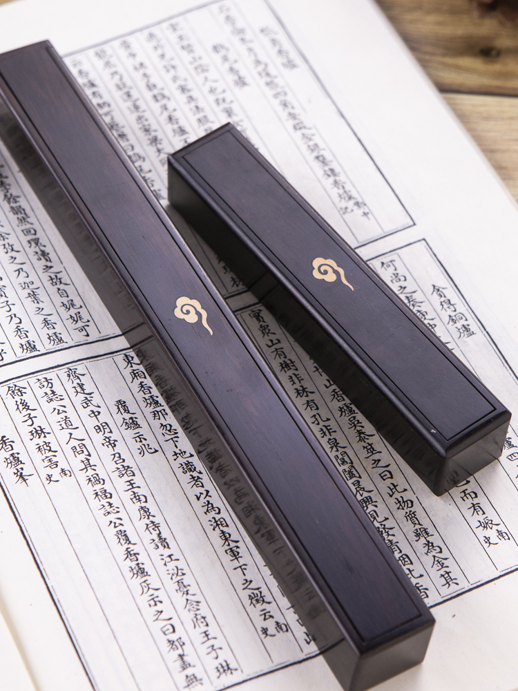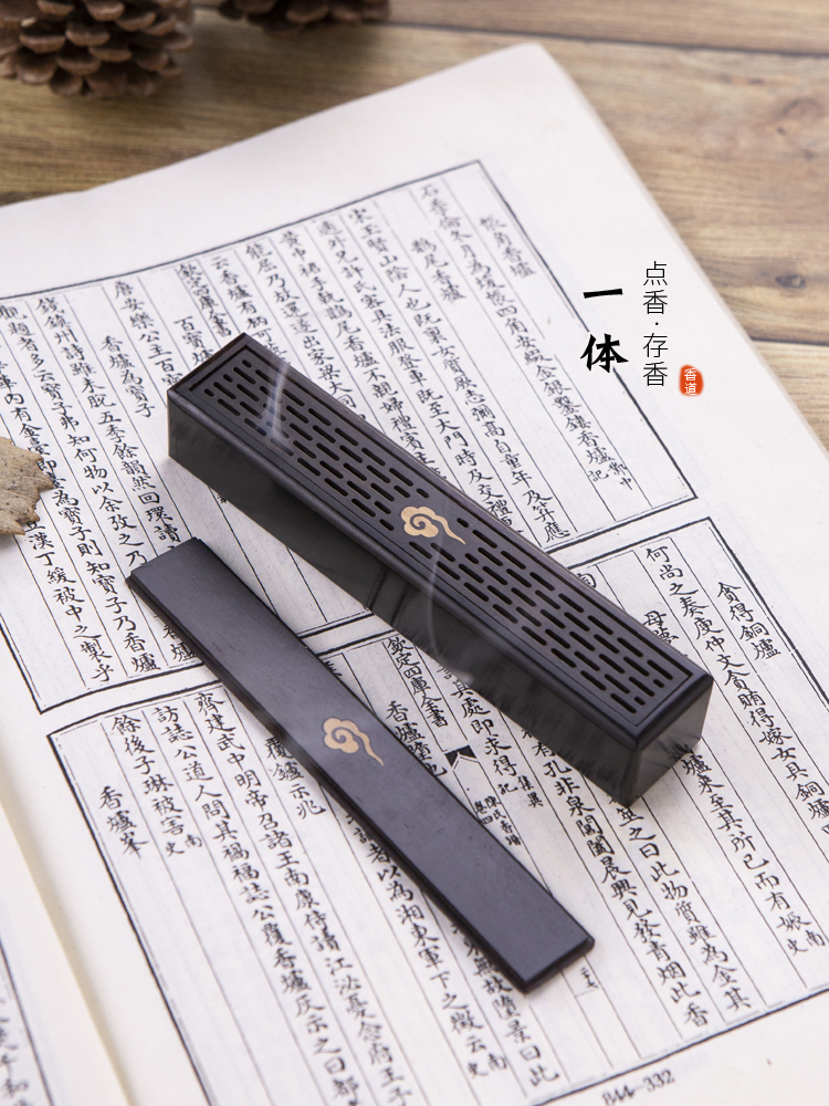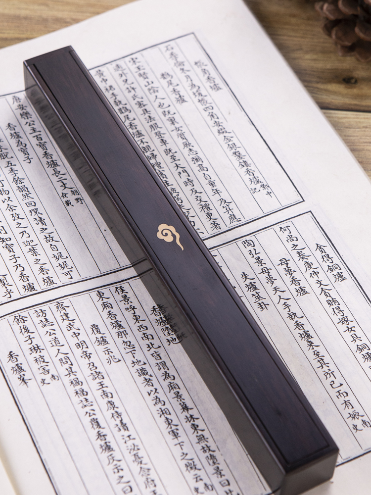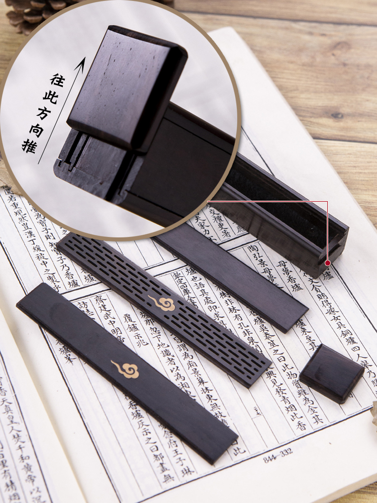 黑檀臥線香盒紫光檀多功能機關盒祥云鏤空香薰香盒沉香檀香點線香1入
