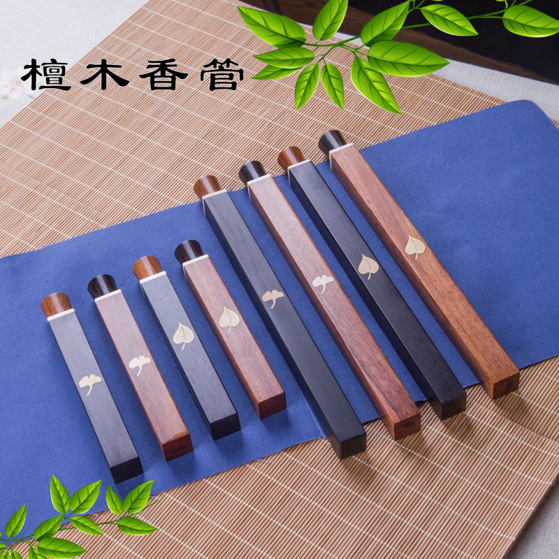 黑檀紅檀木沉香檀香線香長款短款紅木香管香筒香桶方形帶香插熏香1入