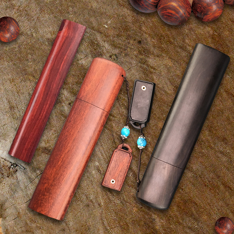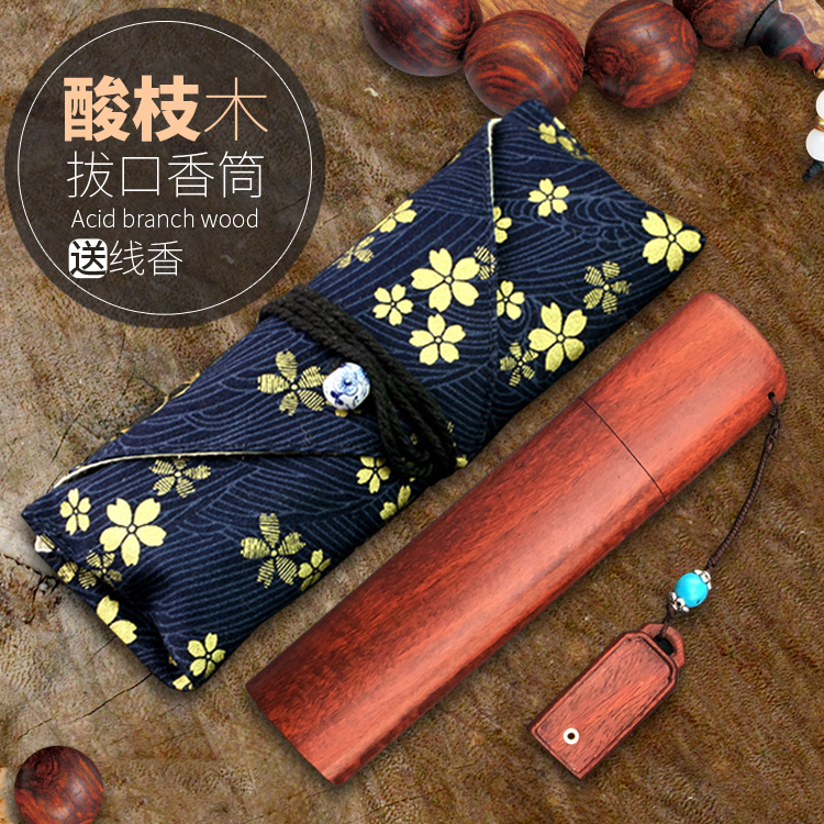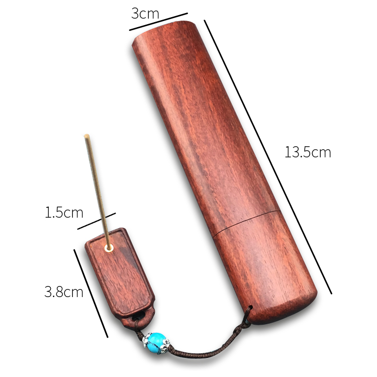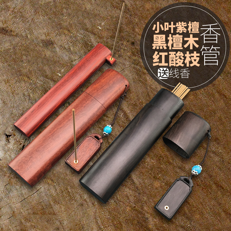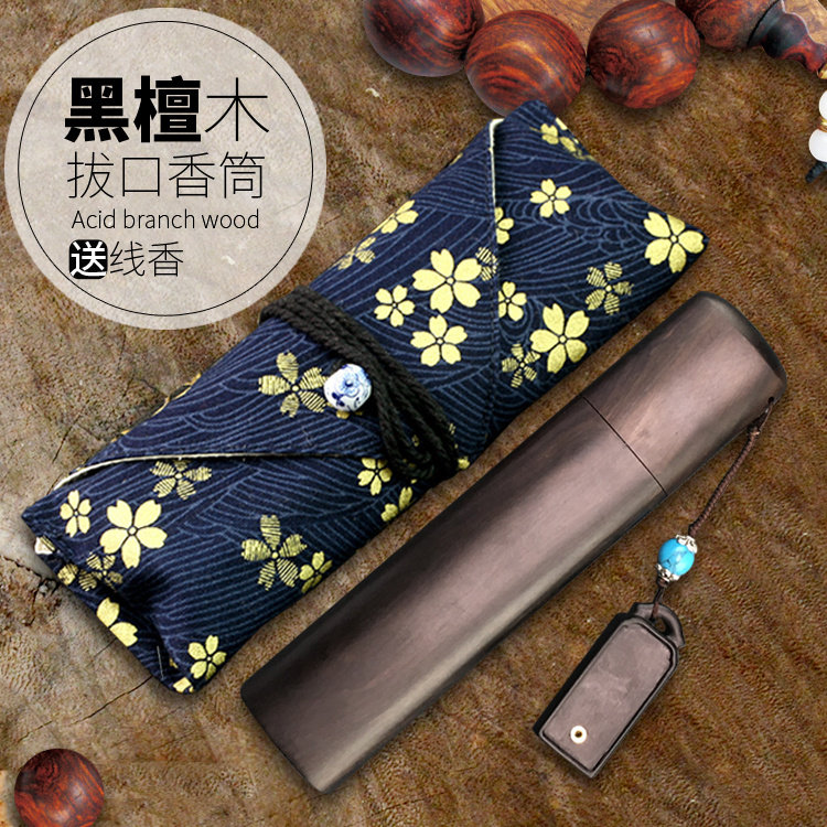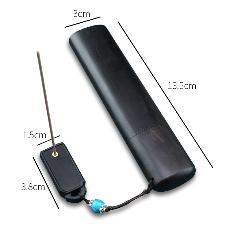 黑檀木儲香盒香插布袋套裝血檀儲香盒香管香筒裝線香便攜式香桶1入