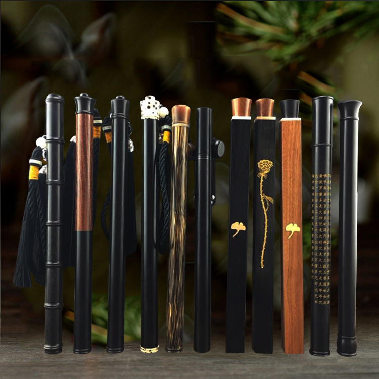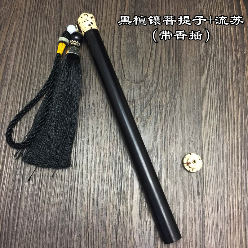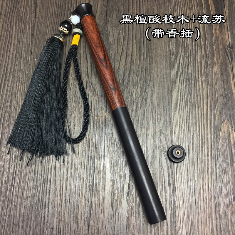 黑檀木紫光檀香管鑲菩提子螺口流蘇長款線香紅木香管臥香筒帶香插1入
