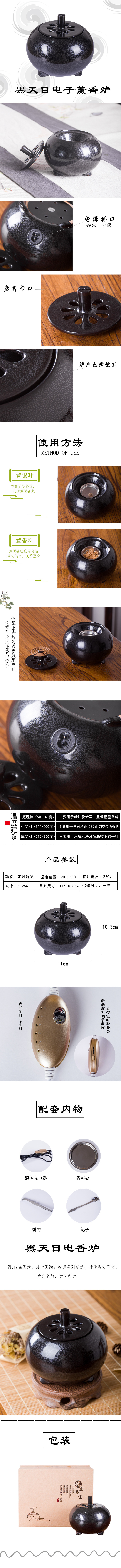 黑天目陶瓷電香爐電子熏香爐精油沉香檀香爐定時調溫香薰爐1入