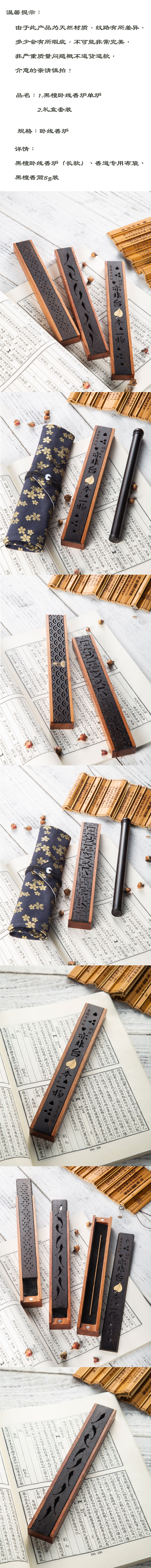 黑檀木長款臥線香爐熏香爐鏤空線香盒臥香盒臥香爐防火棉1入