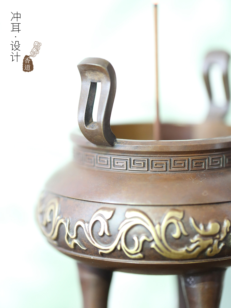 高足銅香爐供佛家用室內熏香爐仿古雙耳三足供奉銅爐沉檀香香?爐1入