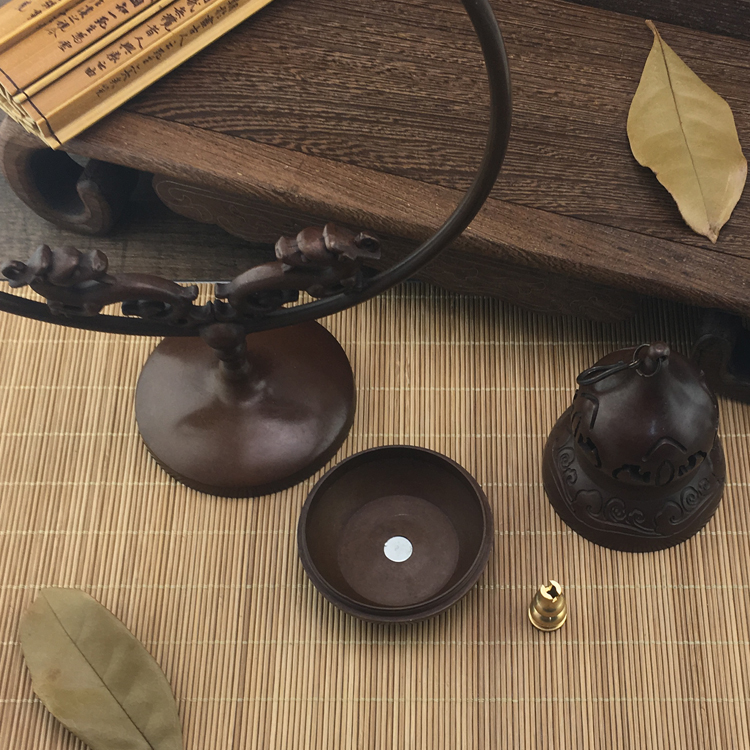 獸紋復古純銅鏤空倒流香爐創意擺件茶道檀香爐大香囊球盤香爐1入