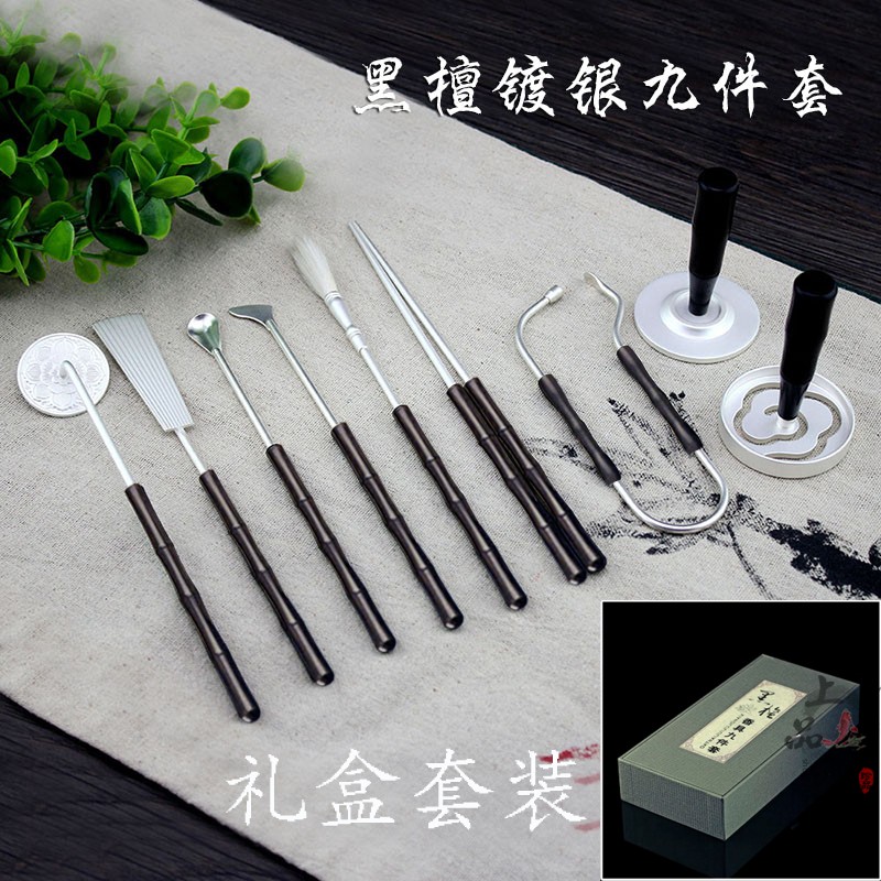 添加影藏字符黑檀鍍銀七件套隔火熏空薰打香篆香道入門用具用品香薰玩家工具