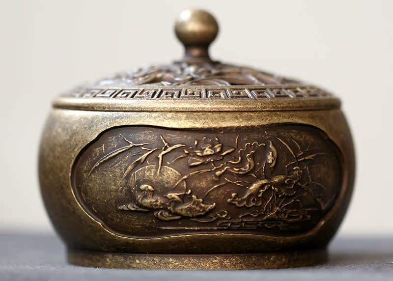 黃銅純銅香爐供奉茶道家用擺件茶道裝飾檀香沉香薰香爐盤香爐1入