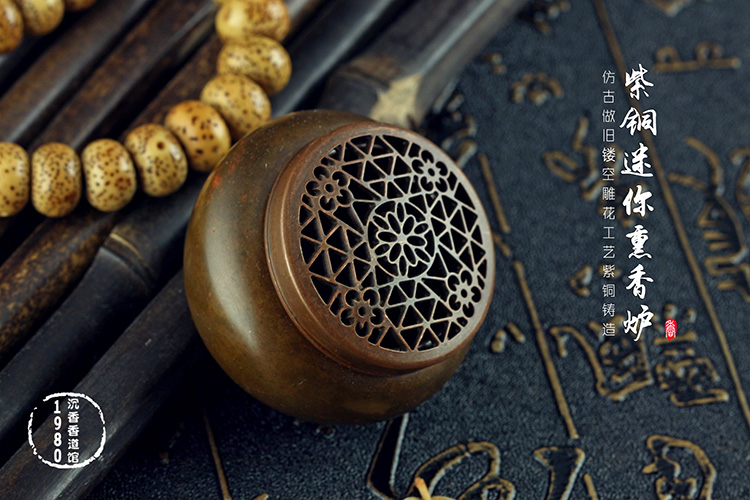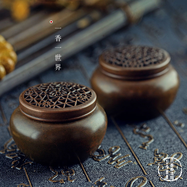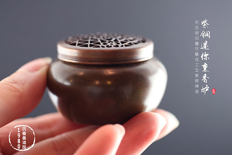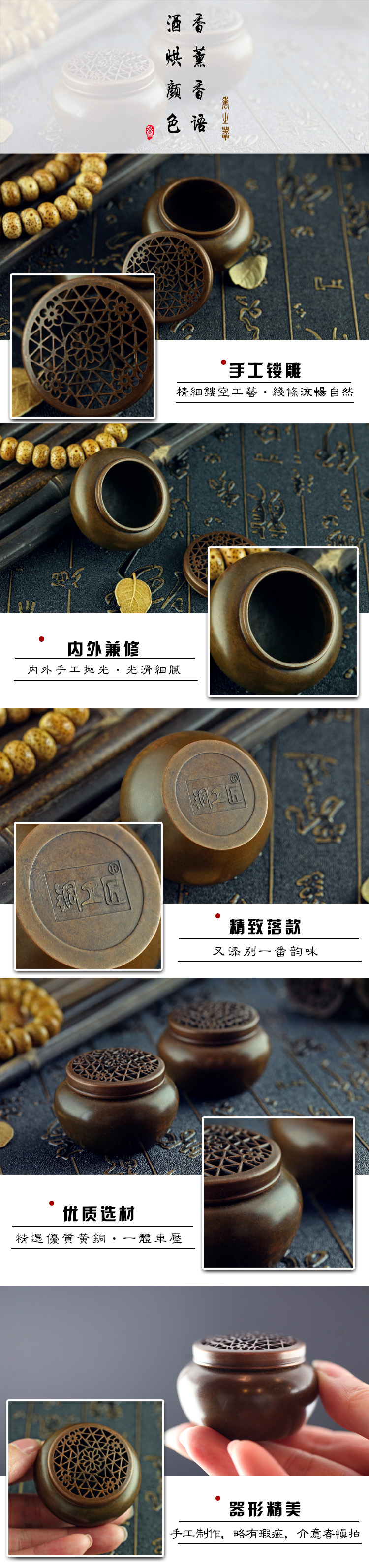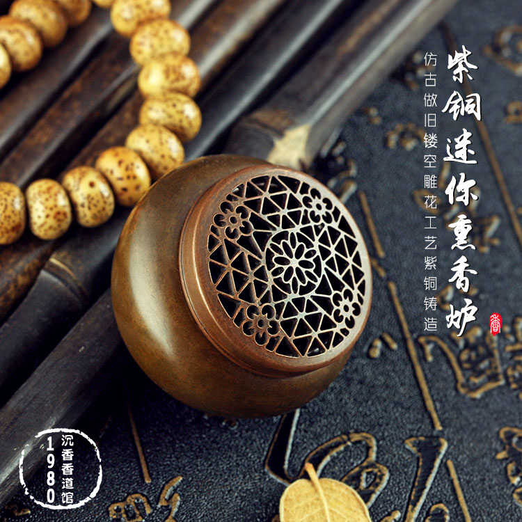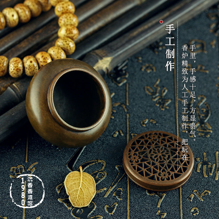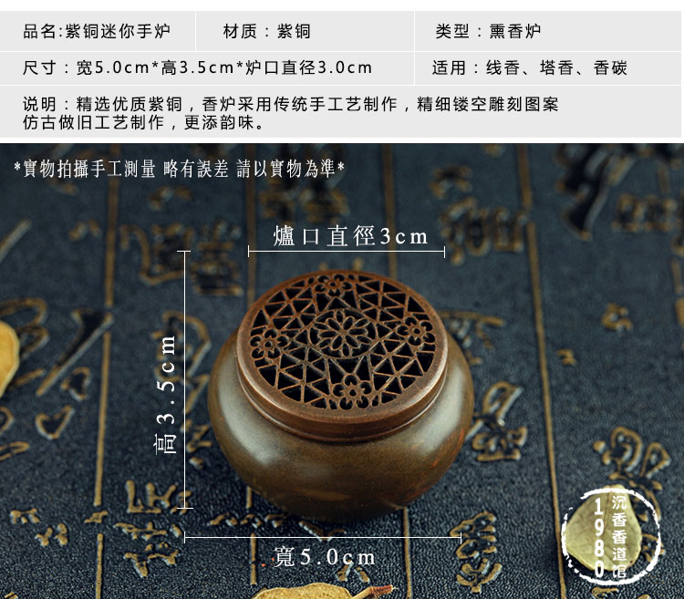 迷你雕花手爐 銅香爐 銅香插 紫銅仿古做舊工藝 迷你小銅爐1入