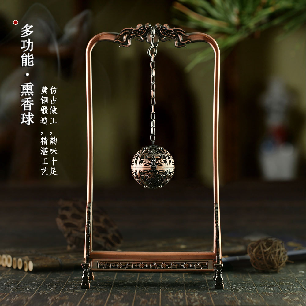 鏤空香薰球竹節香球架仿古法門寺香薰球檀沉香熏香球香道1入