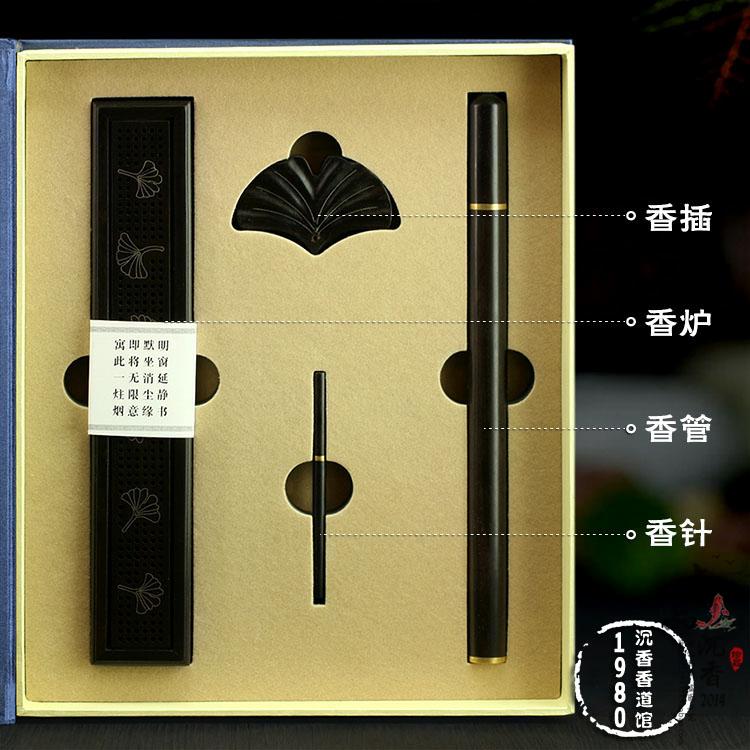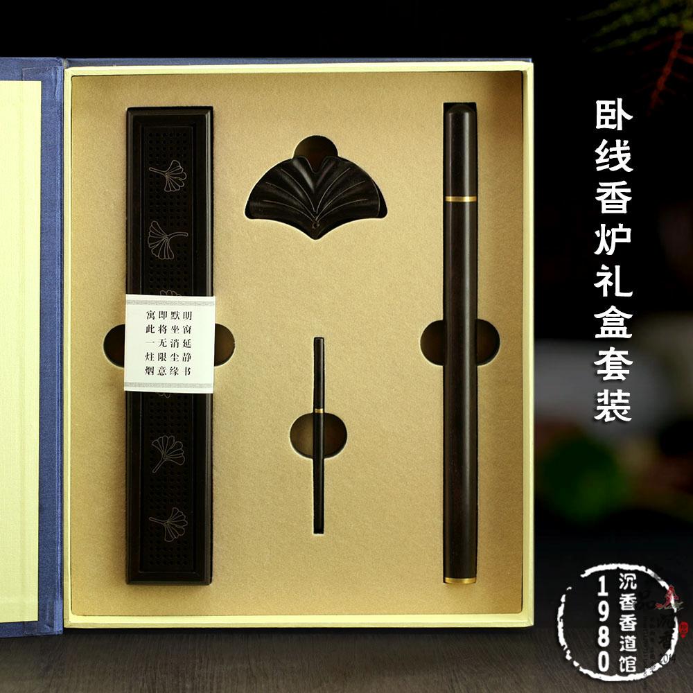黑檀四件套臥香爐香針創意線香爐整料雕刻底座 線香盒1入