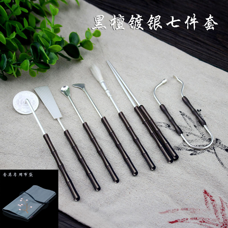 黑檀純銅鍍銀香具七件套香道用具用品香薰篆香隔火熏工具香勺香鏟1入