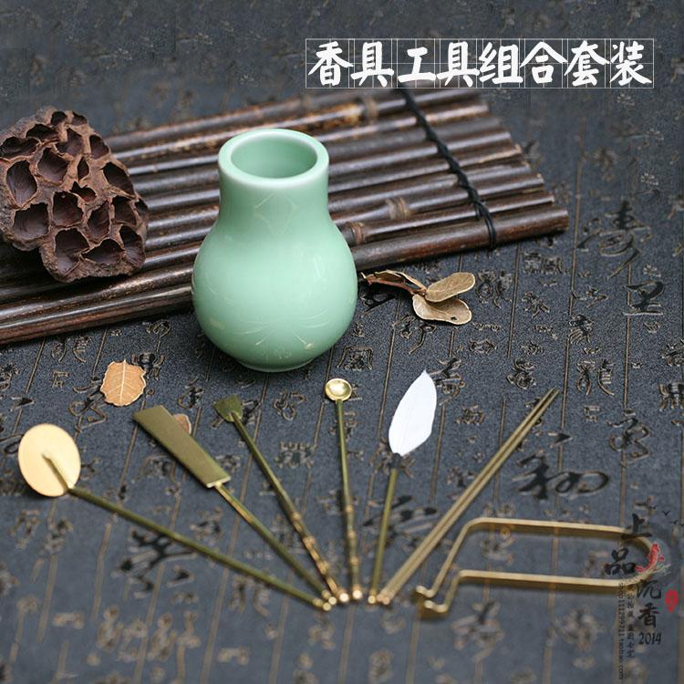 香道用品7套件 工具銅本色七件套 打拓 青瓷工具瓶 香篆入門套裝1入