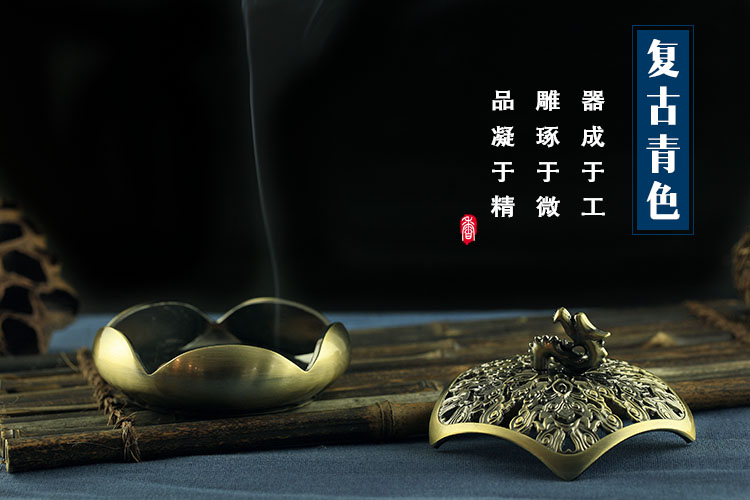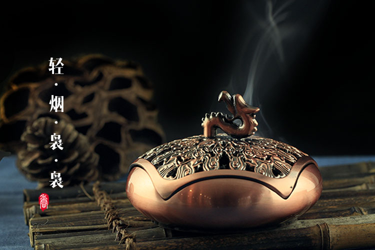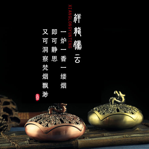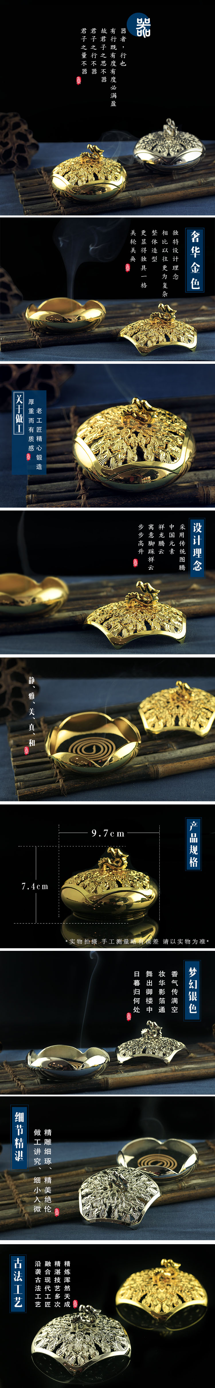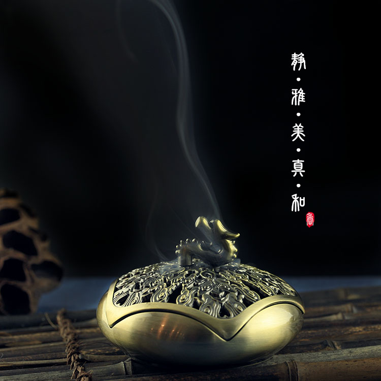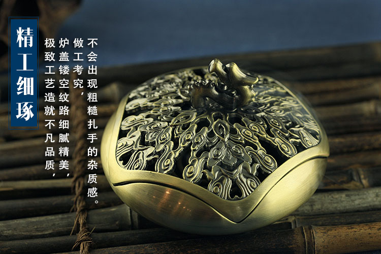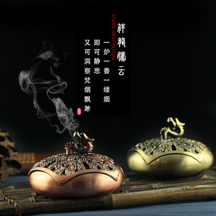 香爐仿古銅家用檀香盤香爐 茶道室內如意祥云創意香薰爐擺件1入
