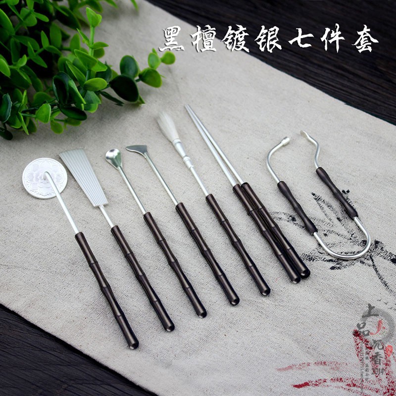 黑檀鍍銀七件套隔火熏空薰打香篆香道入門用具用品香薰玩家工具1入