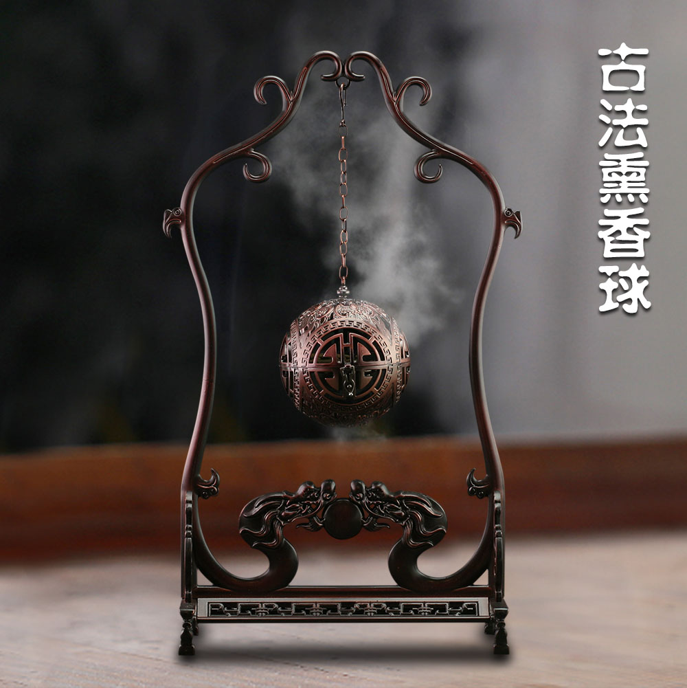 鏤空純銅香薰球竹節香球架仿古法門寺檀沉香熏香球倒流香爐盤香1入