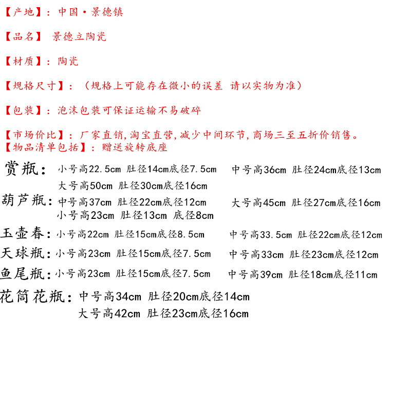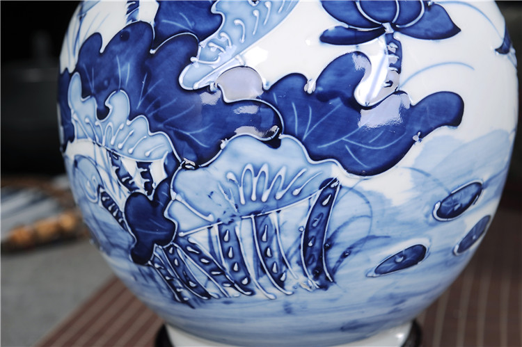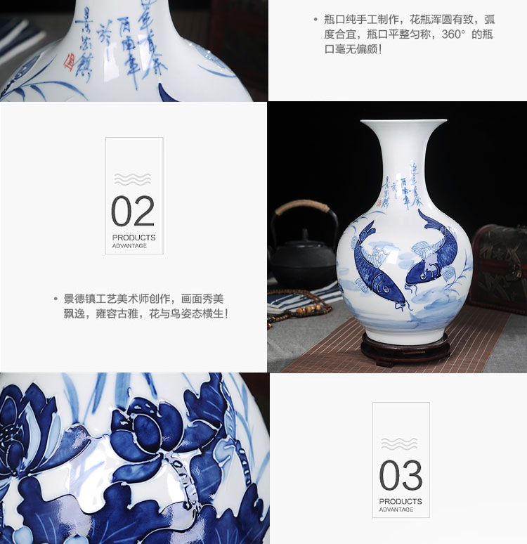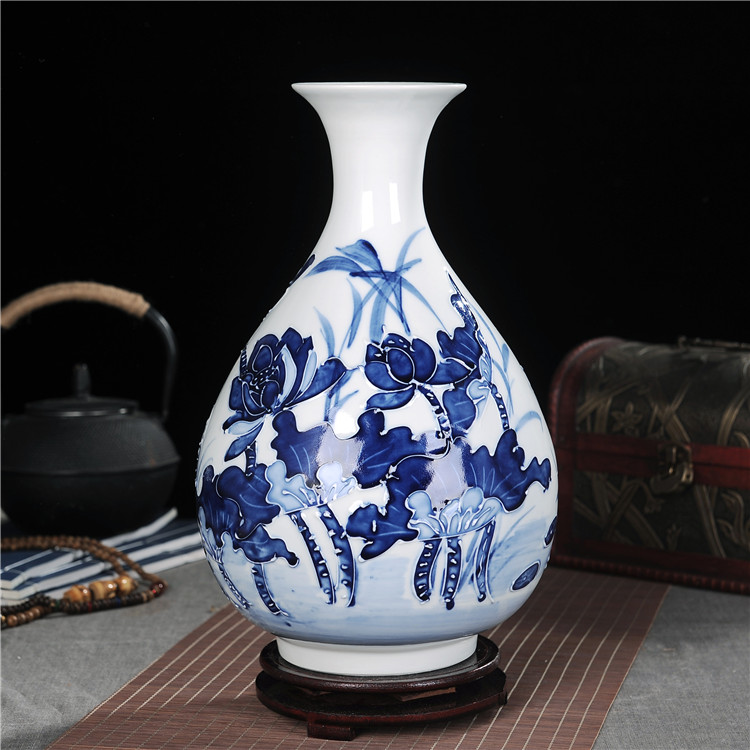 景德鎮陶瓷器手繪青花瓷雕刻花瓶花插現代中式客廳裝飾工藝品擺件1入