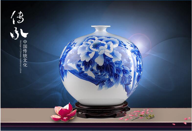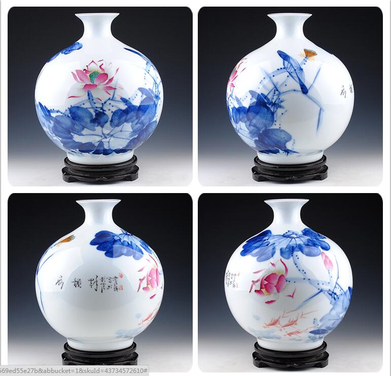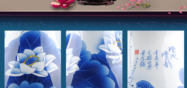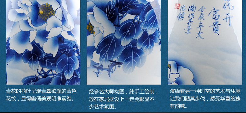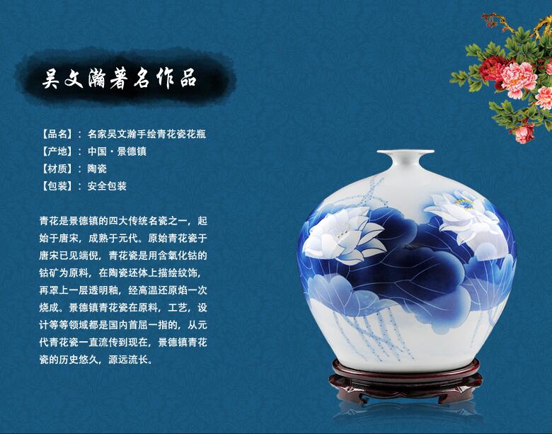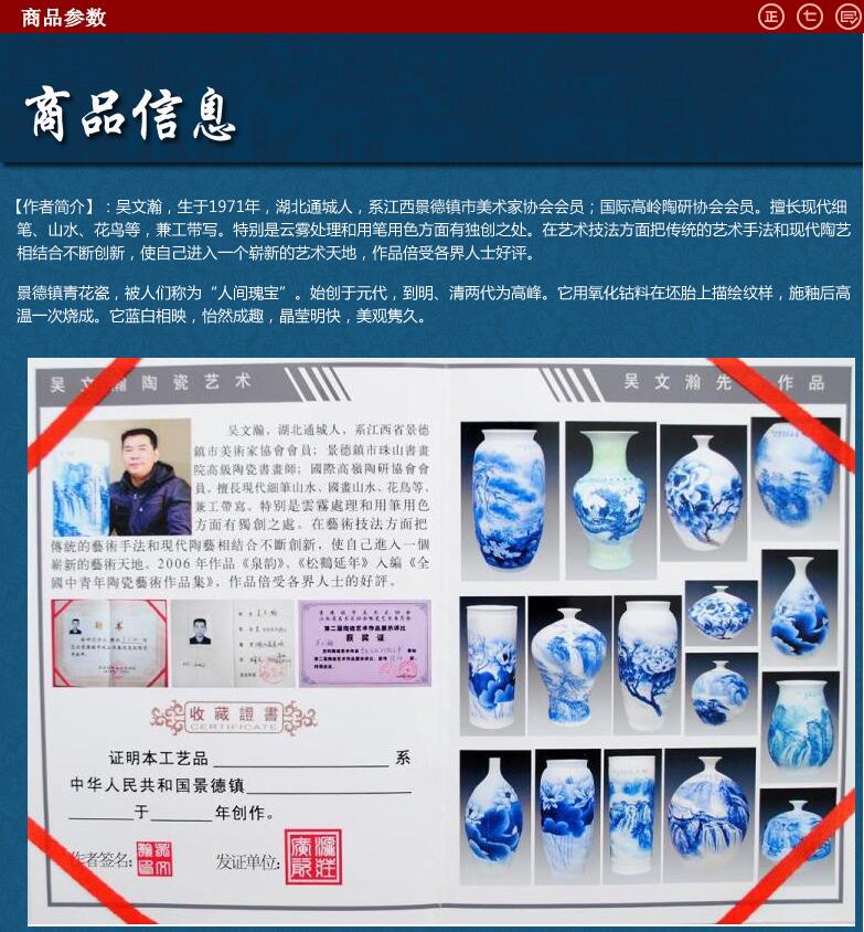 景德鎮陶瓷器 名家吳文瀚手繪青花瓷花瓶石榴 瑤池清韻 收藏證書1入