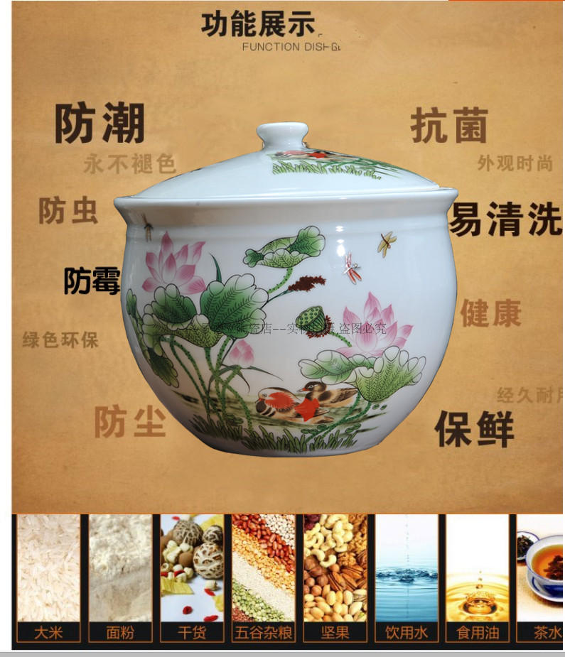 10斤20斤大號陶瓷米缸景德鎮瓷器米桶腌菜腌肉壇子帶蓋青花儲蓄罐1入