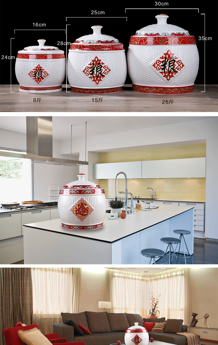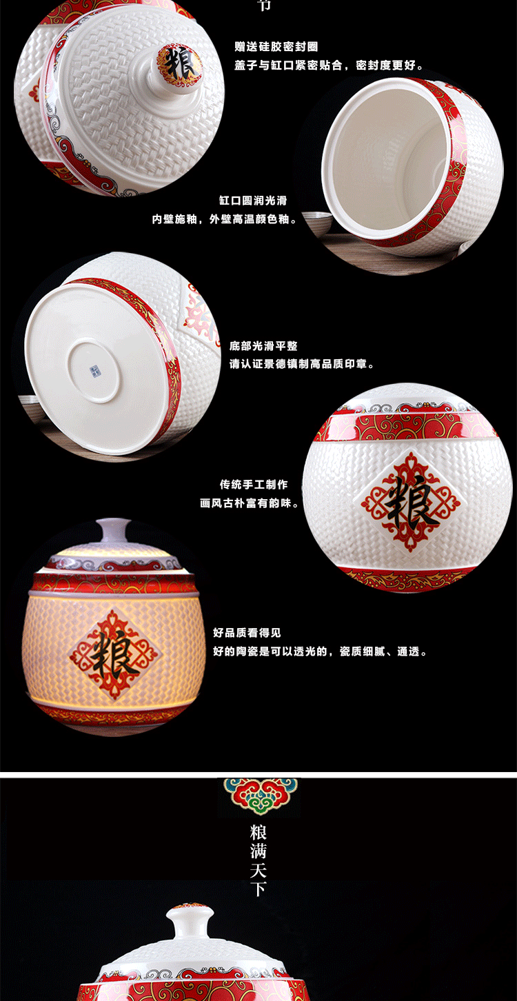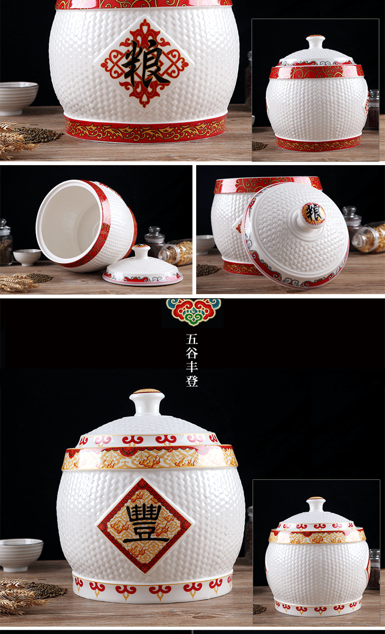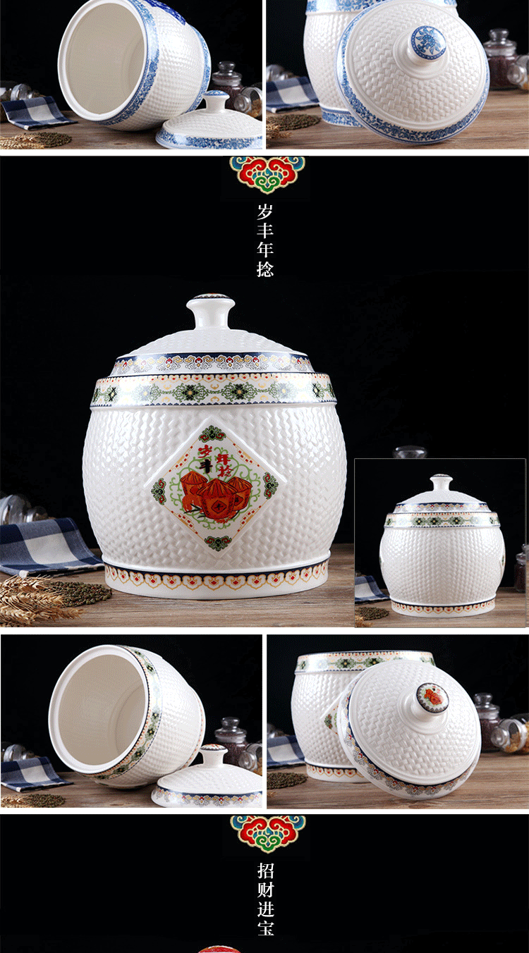 陶瓷米缸米桶15斤20斤帶蓋儲物罐家用面桶儲米罐桶防蟲防潮景德鎮1入