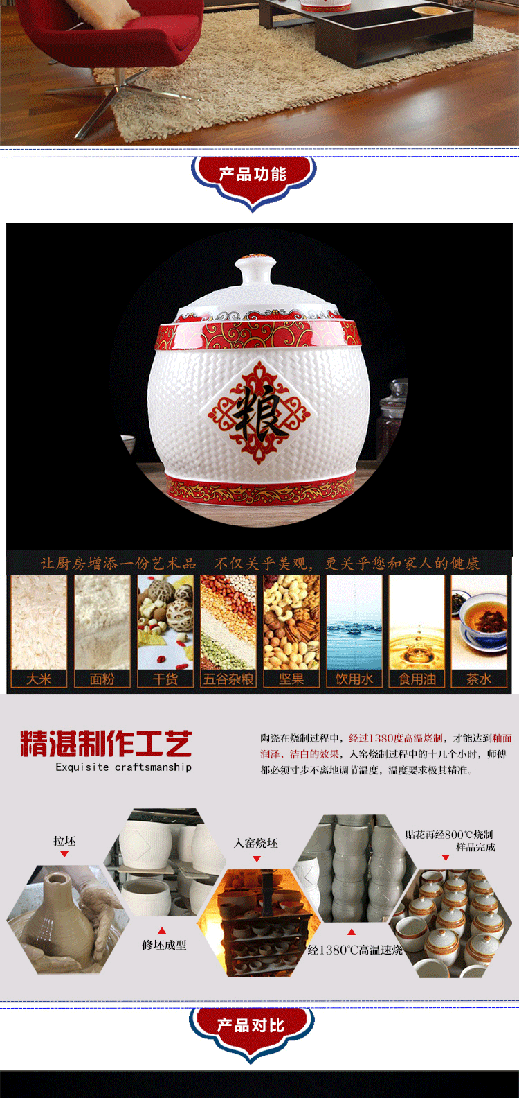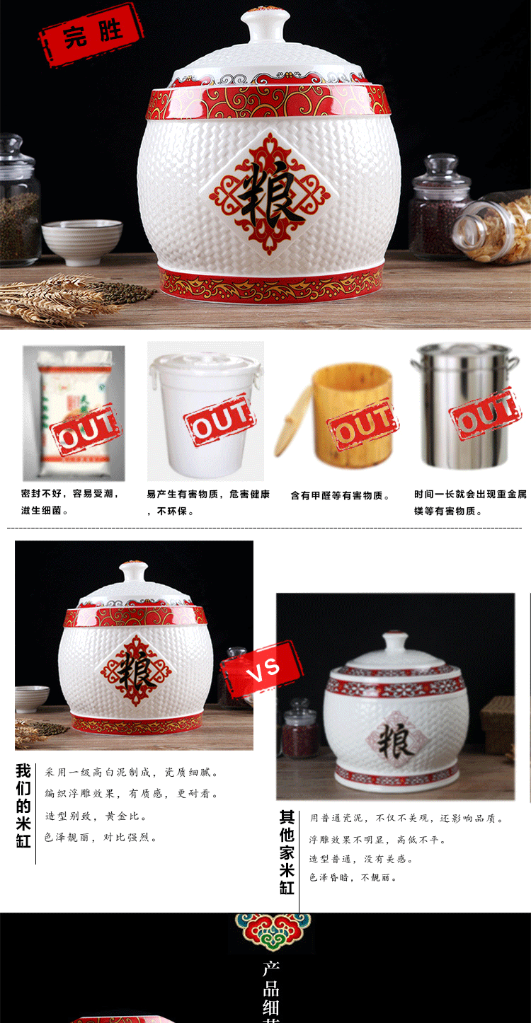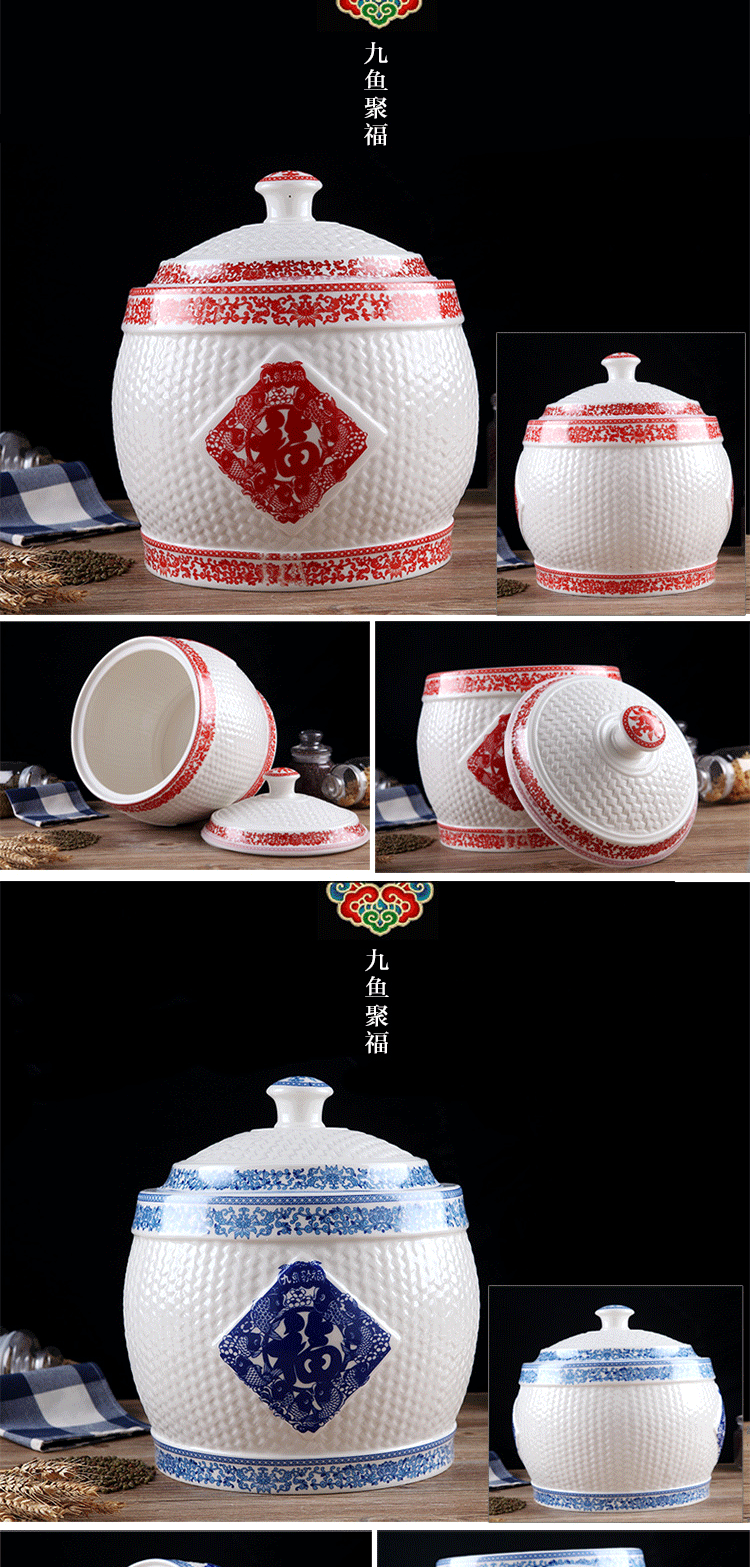 陶瓷米缸米桶15斤20斤帶蓋儲物罐家用面桶儲米罐桶防蟲防潮景德鎮1入