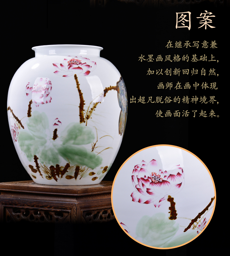 景德鎮陶瓷名家手繪花瓶荷花字畫缸畫筒插花酒店客廳玄關裝飾擺件1入