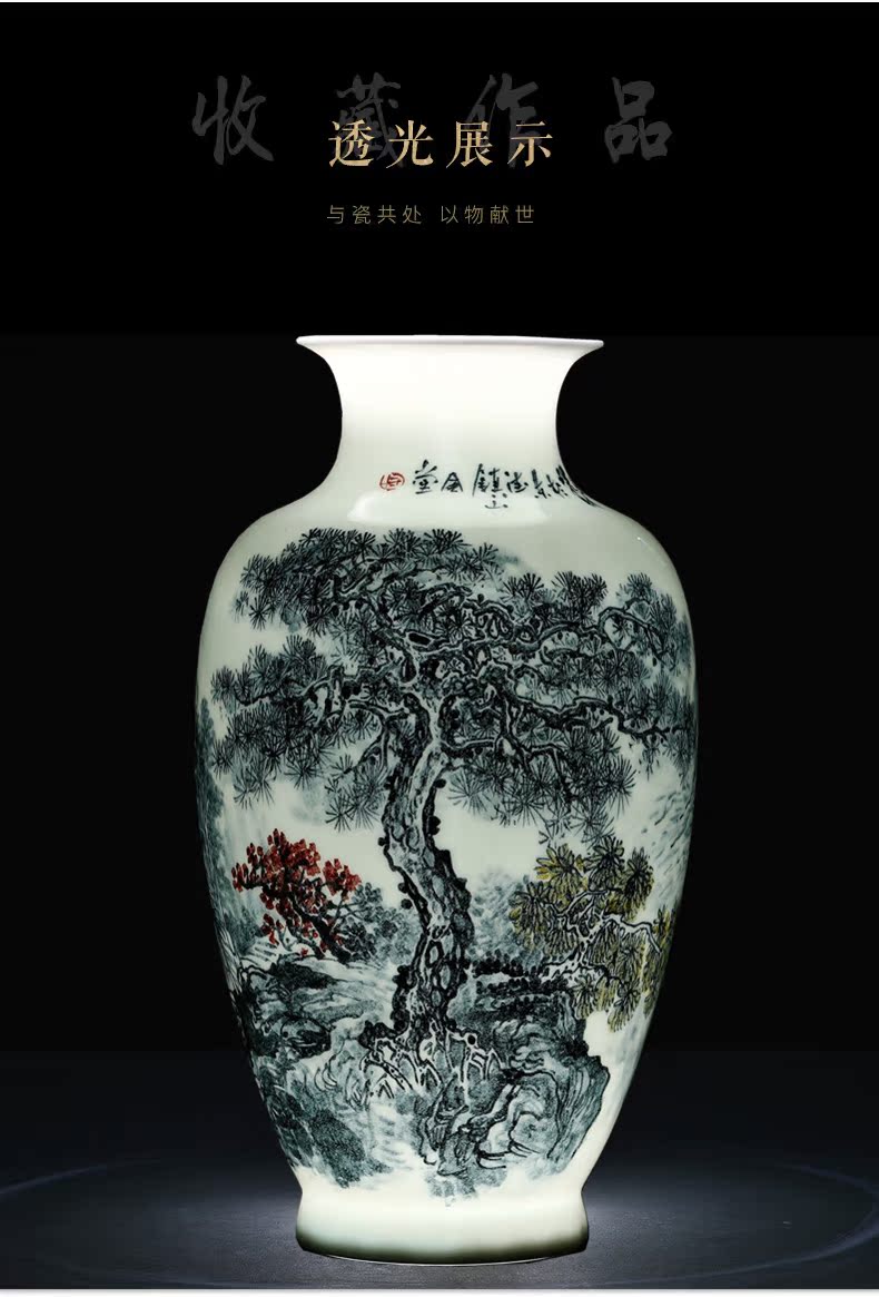 景德鎮手繪青花粉彩陶瓷花瓶客廳擺件插干花現代新中式裝飾品擺設1入