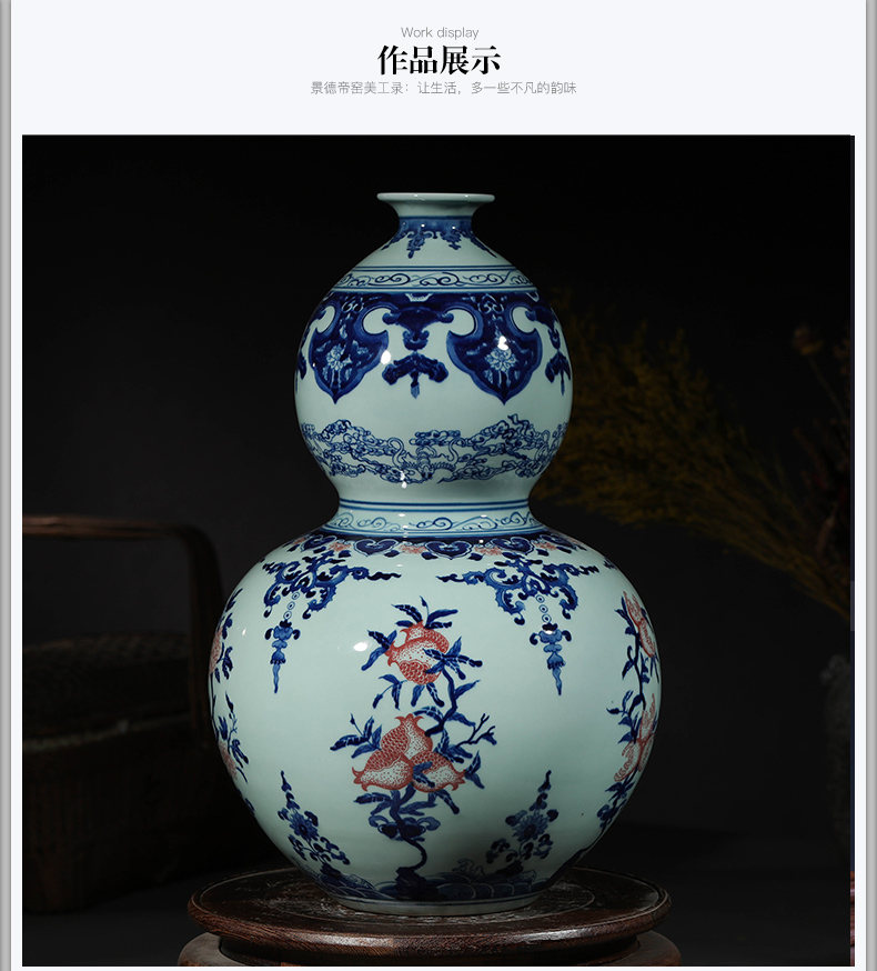 景德鎮陶瓷手繪青花釉里紅花瓶花器花插家居客廳臥室裝飾擺件1入