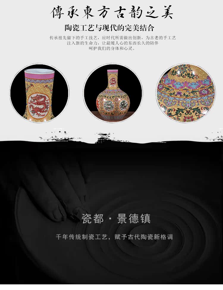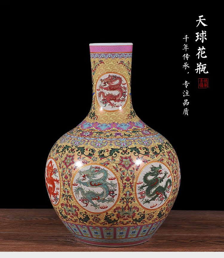 景德鎮陶瓷器天球瓶龍高檔仿古落地大花瓶客廳電視柜裝飾工藝擺件1入