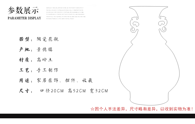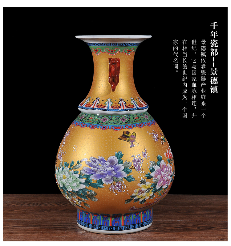 景德鎮陶瓷器粉彩花瓶雙耳創意玉壺春客廳家居裝飾品擺件1入