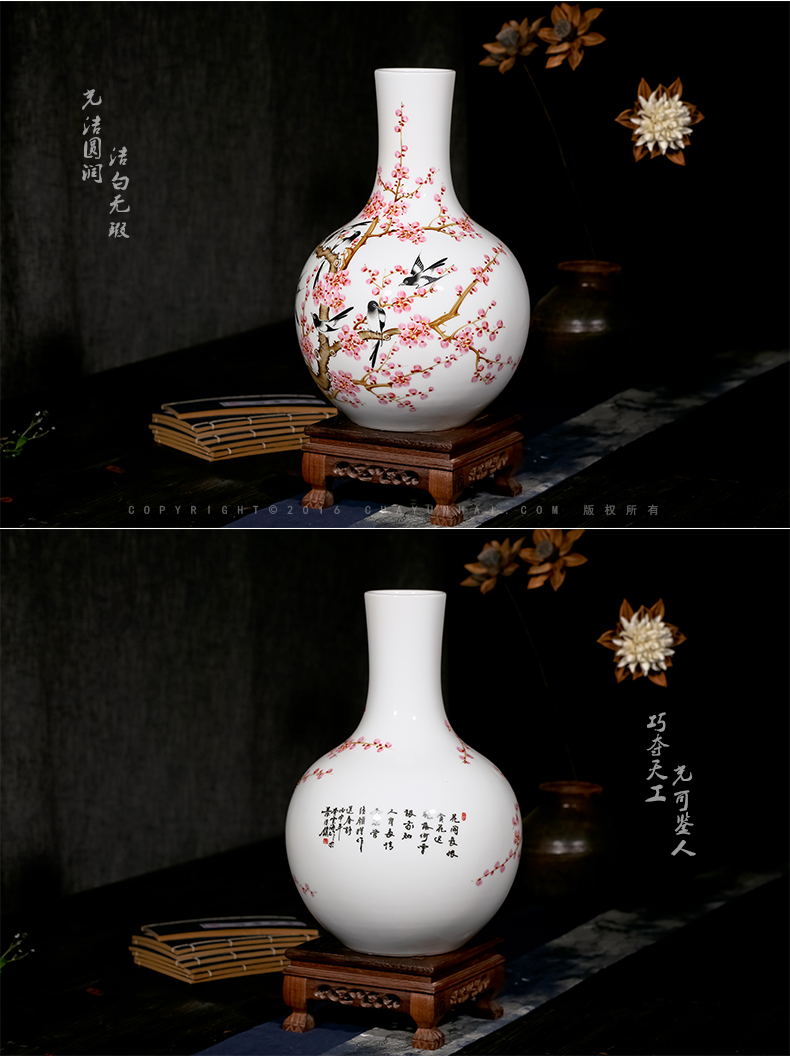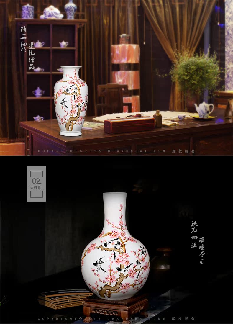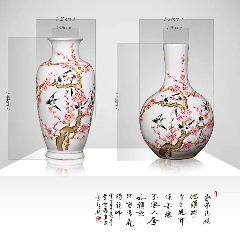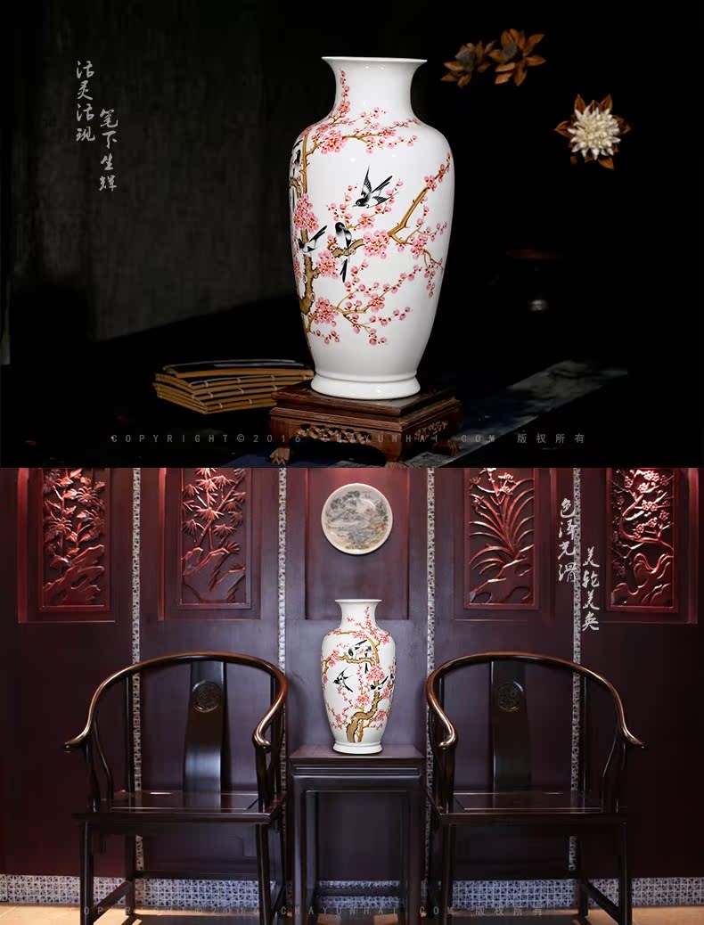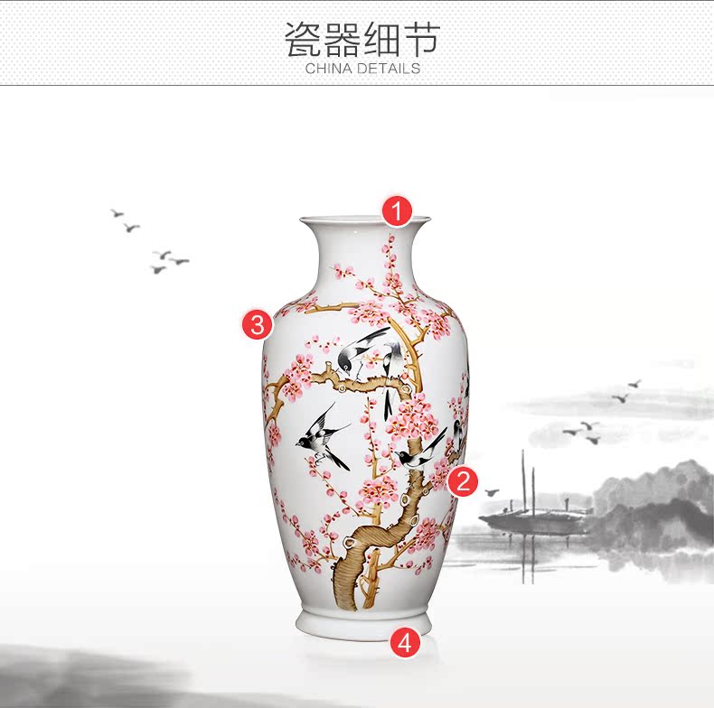 正品景德鎮陶瓷器手繪粉彩梅花花瓶插花瓶客廳書房家居擺件裝飾1入