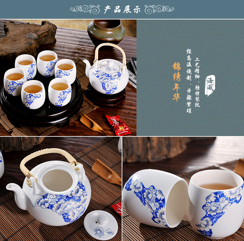 【送木制茶盤】禮品景德鎮茶具套裝整套冰裂家用陶瓷茶杯提梁茶壺1入