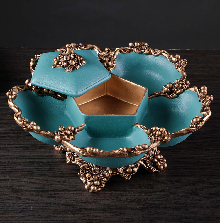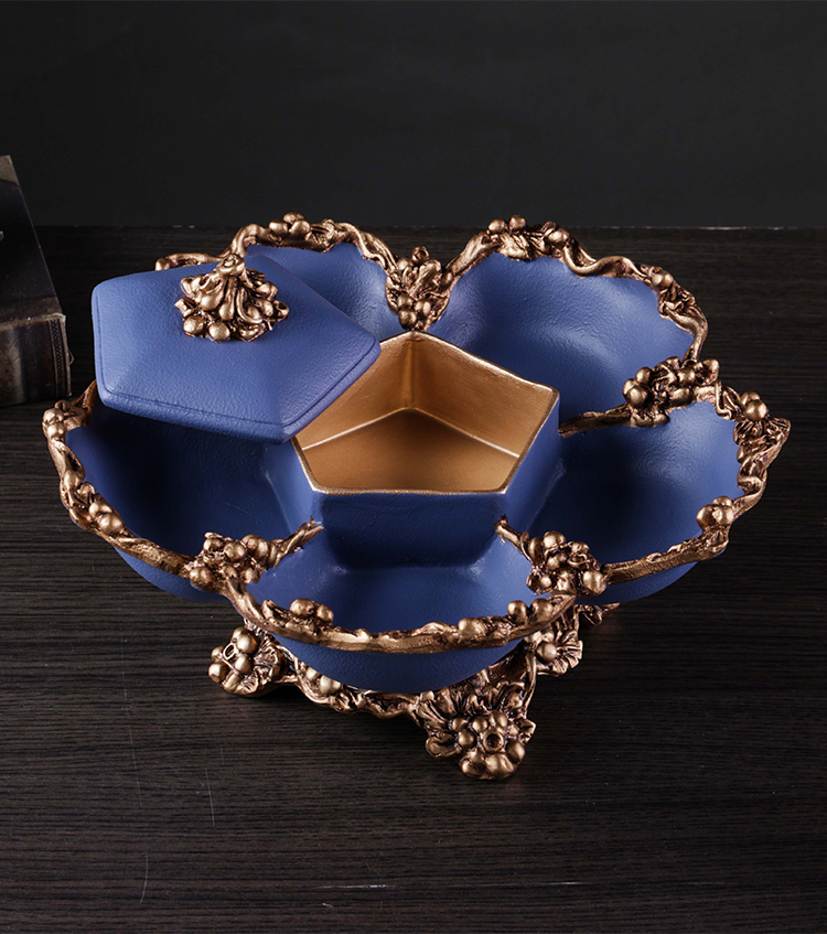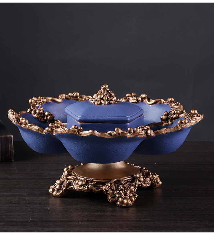 美式復古帶蓋干果盤分格客廳 創意家用北歐式茶幾 過年新中式擺件1入