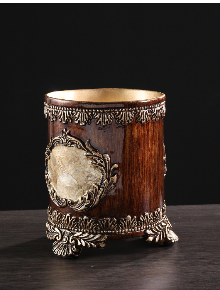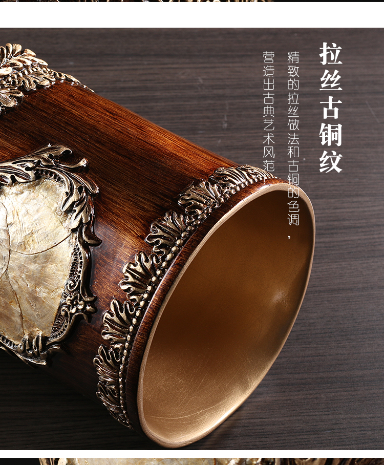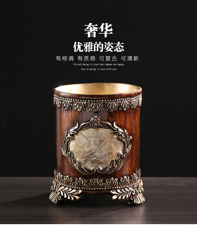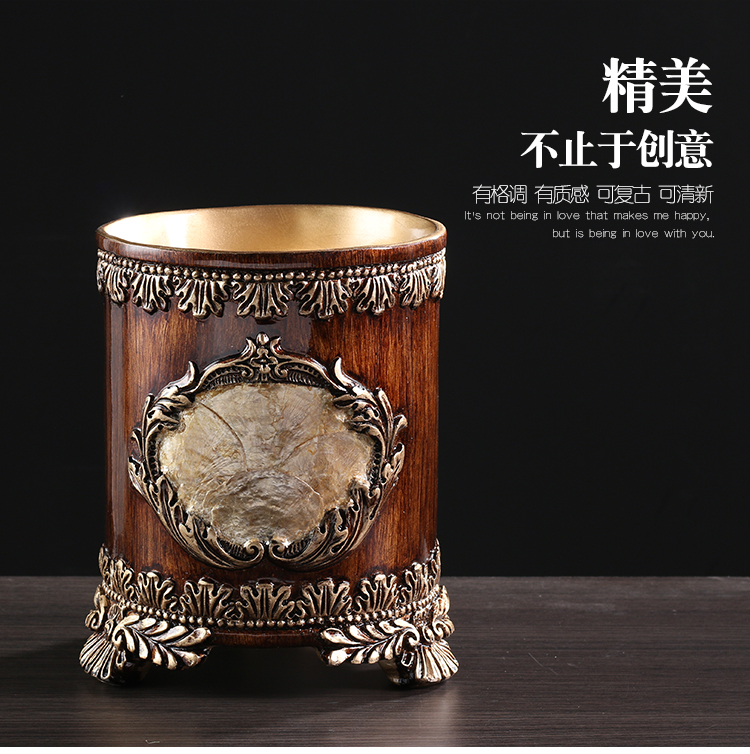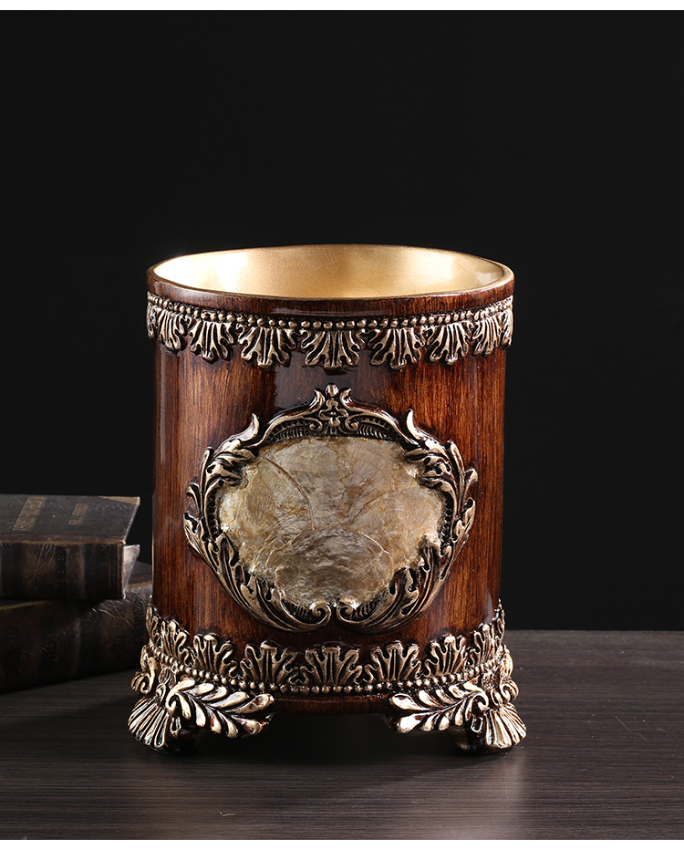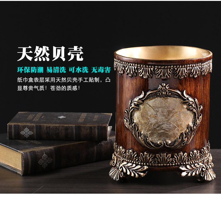 歐式復古奢華垃圾桶美式客廳臥室茶幾裝飾品擺件收納桶雜物桶家用1入