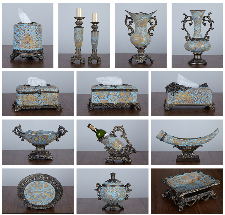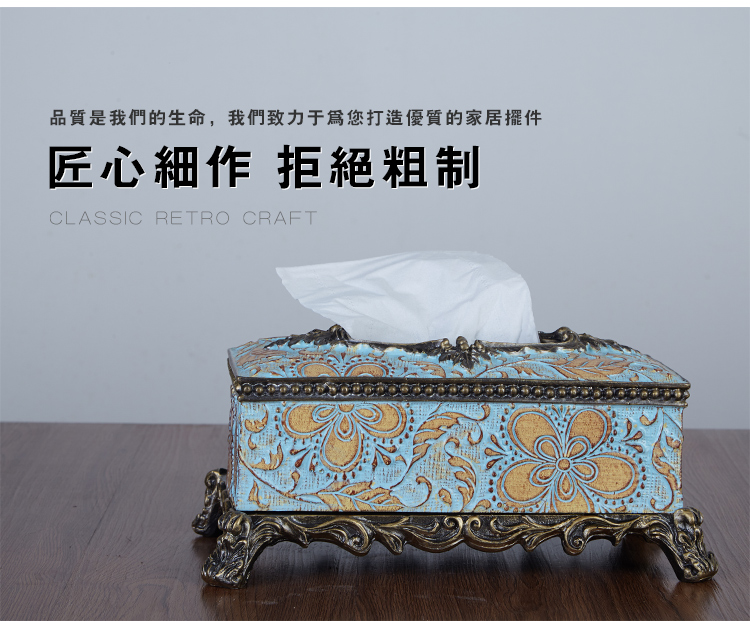 歐式創意紙巾盒客廳擺件 廁所抽紙盒家用 高檔三件套奢華復古裝飾1入